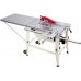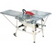 Рабочий стол изготовлен из оцинкованного листа и имеет большую поверхность, которую при необходимости можно удлинить еще больше, используя дополнительную секцию, входящую в стандартную комплектацию. Если же циркулярная пила будет использоваться для работы с листовыми материалами, то необходимо будет отдельно купить расширения стола.