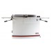 Отличительная особенность новинки – параллелограммный механизм регулировки высоты столов. В сегменте компактного оборудования такая схема получила распространение сравнительно недавно и пока еще более характерна для тяжелого промышленного оборудования. Вместо наклонных скользящих направляющих в ней используются рычаги на осях, нет ни винтов, ни эксцентриков, а усилие от рукоятки прикладывается непосредственно на сторону параллелограмма. Внутреннее трение и люфты в такой конструкции минимальны, что позволяет при настройке перемещать тяжелые столы (регулируются оба: и приемный, и разгрузочный) с наименьшими усилиями и максимально точно.