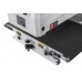 Модель входит в новую линейку Jet и отличается современным эстетичным дизайном: корпус станка литой из легкого сплава, к нему крепятся жесткие и прочные стальные узлы транспортера и барабана. Регулировка высоты шлифовального узла производится вращением рукоятки. Подающая лента транспортера имеет регулировку параллельности при помощи одного винта и барашковой гайки – вспомогательный инструмент для настройки не нужен. Скорость подачи варьируется бесступенчато в диапазоне от нуля до трех метров в минуту.
