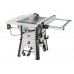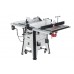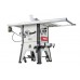 Основа станка – мощный литой из чугуна рабочий стол, к нему прикреплен пильный модуль из этого же материала, содержащий в себе привод диска и механизмы его наклона и погружения. К столу же крепятся стальные из толстого листа расширения слева и справа, а также составные направляющие с миллиметровой разметкой. Они дополнительно скрепляют секции рабочей поверхности и служат базой для параллельного упора. Он оборудован удобным эксцентриковым зажимом с двухсторонней фиксацией и обеспечивает быструю, удобную и жесткую настройку ширины реза. Его можно установить как слева, так и справа от диска, а также снять совсем (для хранения есть кронштейны на корпусе). Для торцевания и распиловки под углом есть транспортирный упор, скользящий по Т-образному пазу (они есть с двух сторон диска).
