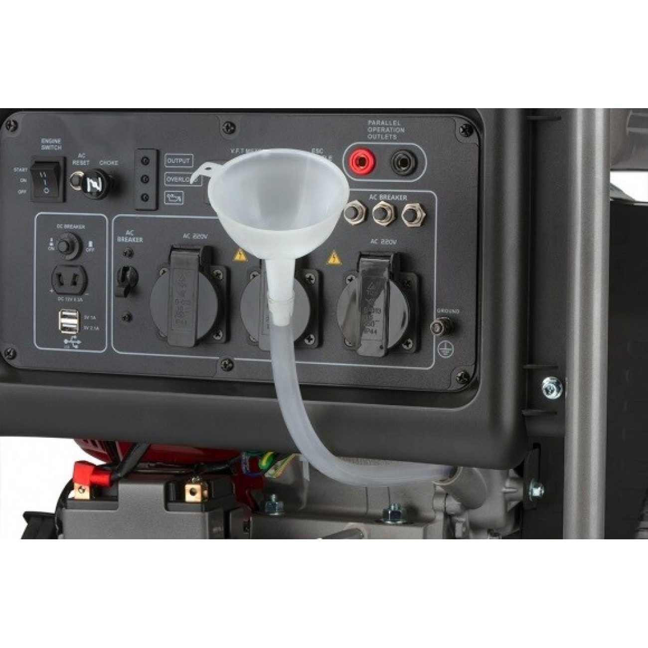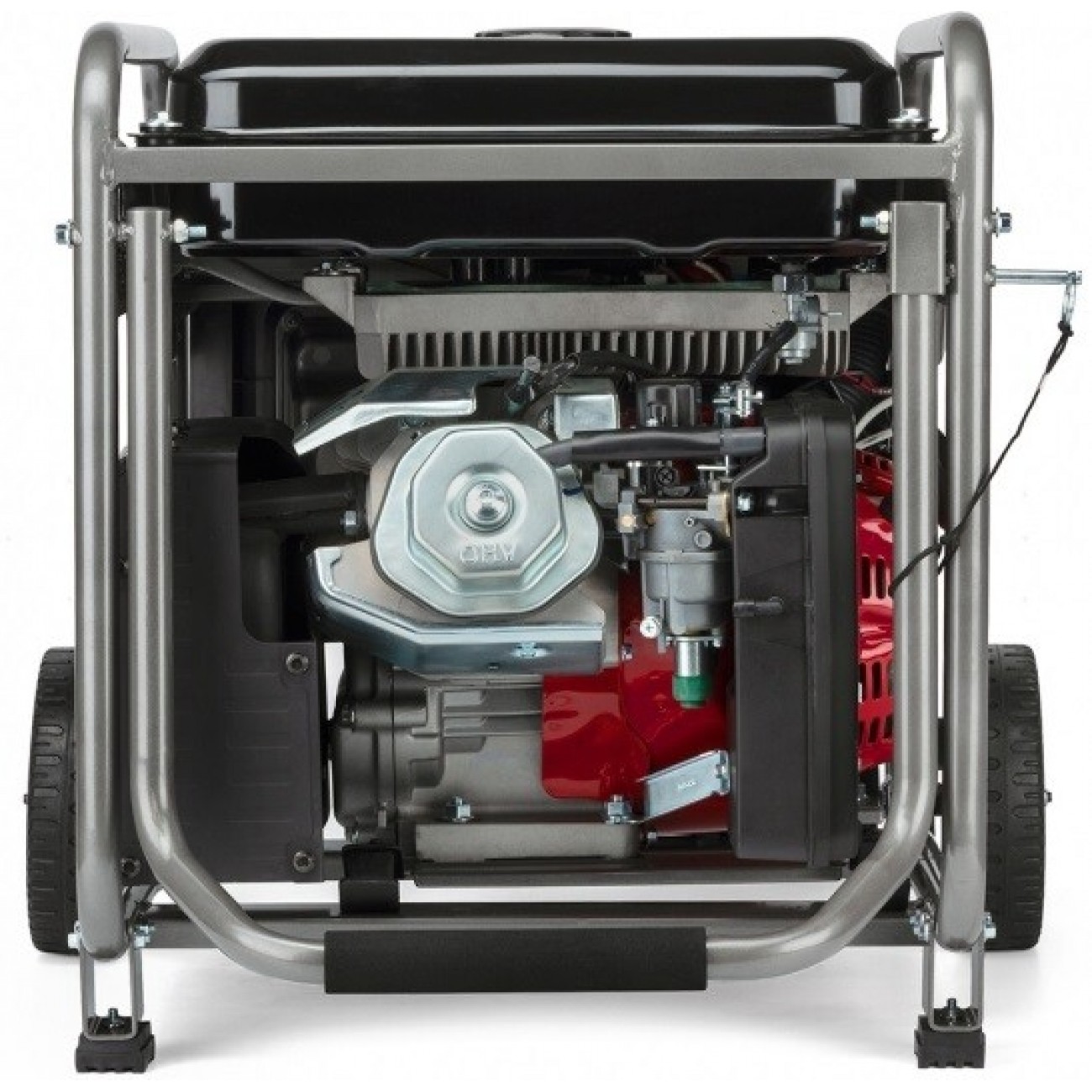 Дуже потужний пересувний однофазний інверторний генератор Weekender Smart 8750IE з активною потужністю 7 кВт (максимальна - 7,5 кВт), з подвійним стартом на вибір - електричним або ручним, з можливістю встановлення додаткової автоматики для миттєвого перемикання на генератор, з лічильником відпрацьованих мотогодин. Для підключення навантаження передбачено три традиційні розетки 220В по 16А. Поміщений у сталеву міцну раму нержавіючу для захисту механізмів від ударів, випадкових деформацій.