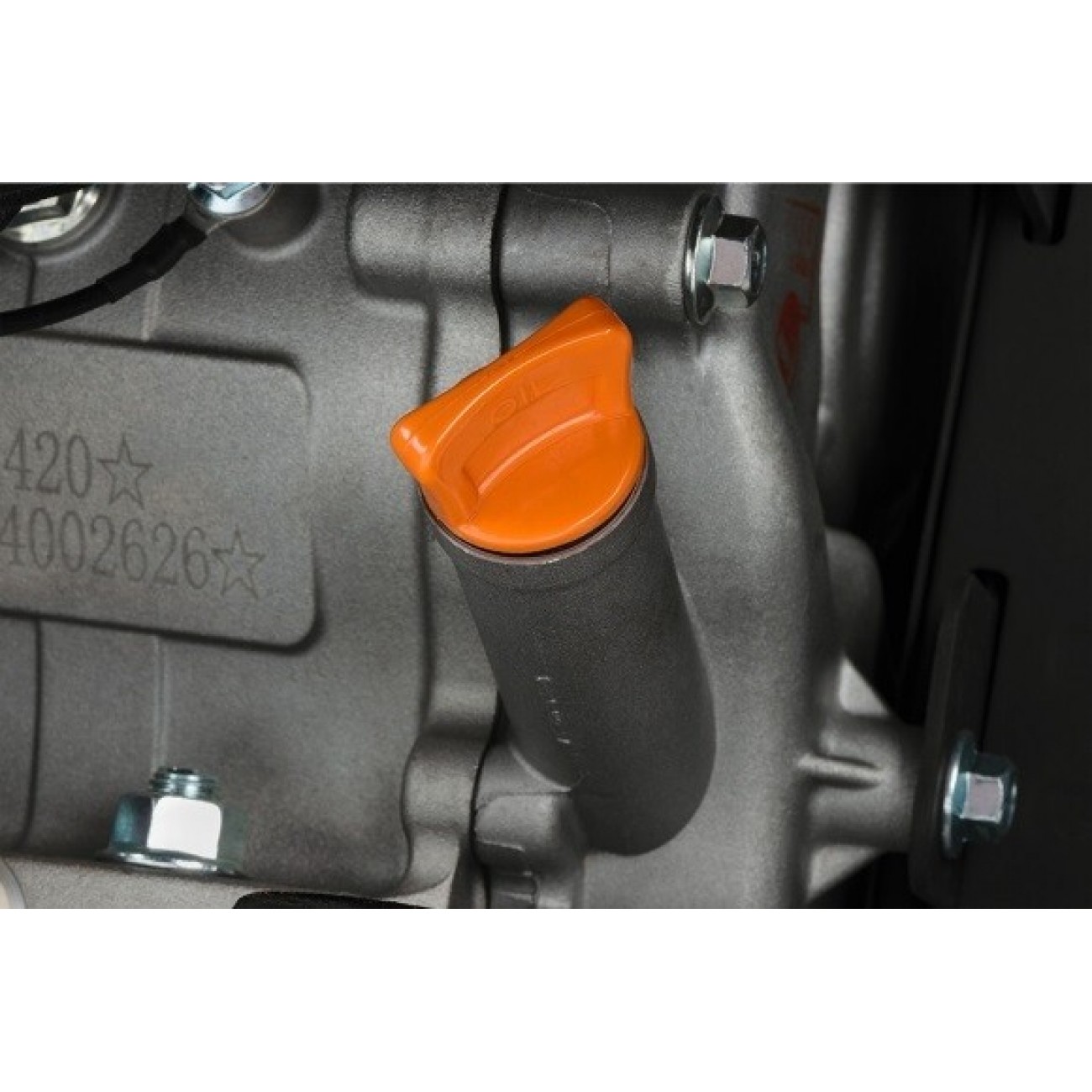 Встановлено потужний одноциліндровий чотиритактний бензиновий двигун з верхнім розташуванням клапанів, з ефективним примусовим повітряним охолодженням. Верхнє розташування дає можливість краще спалювати паливо, підвищити загальну продуктивність та економічність витрати.