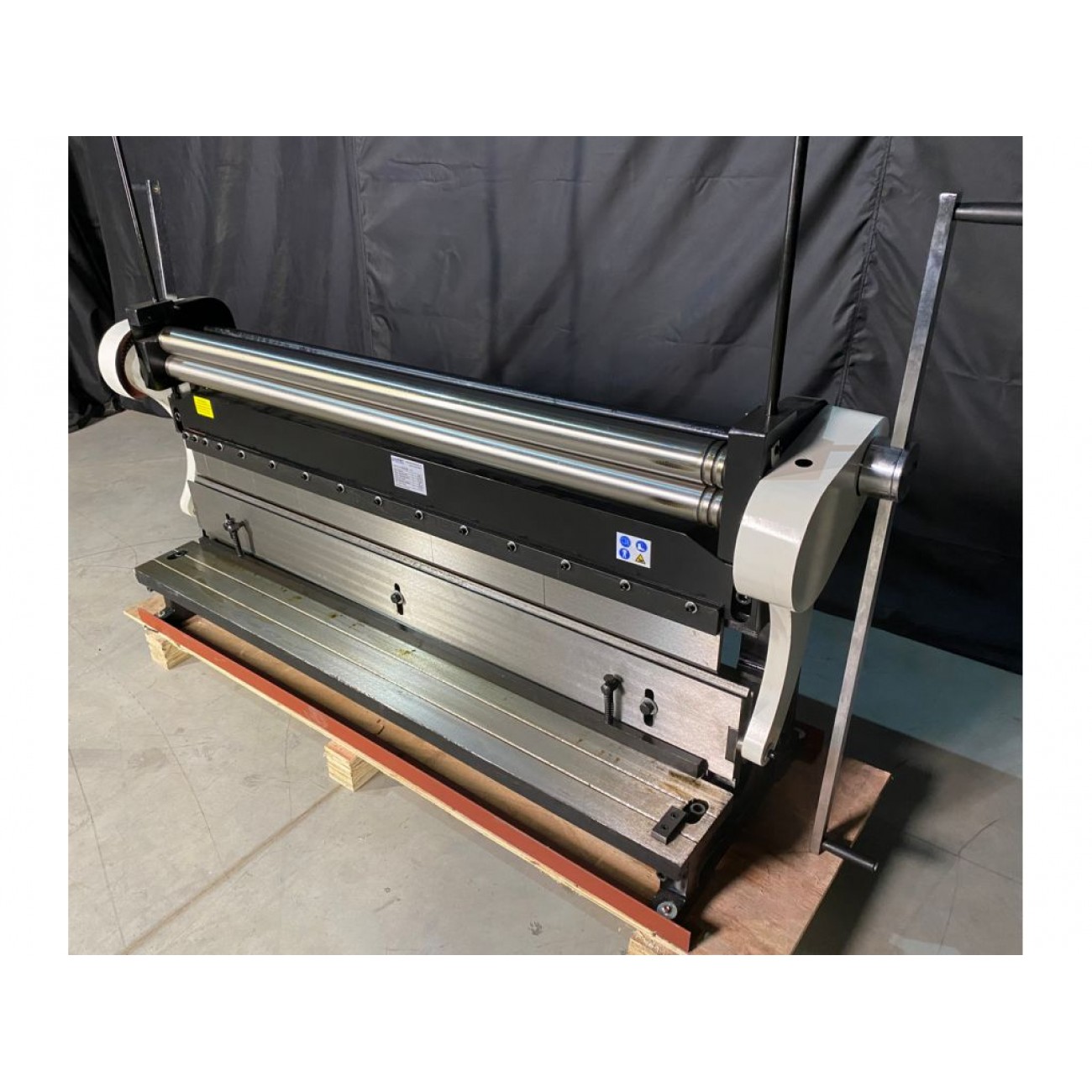 Комбінований верстат MAST Metalltechnik M-EF-1320x1.5 виконує одразу 3 функції - вальцювання, різання та згинання листового металу товщиною до 1,5 мм. Підходить для сталі, міді, латуні та алюмінію. Діаметр валків становить 76 мм. Мінімальний діаметр прокату - 114 мм, кут згинання - 90°. Підходить цей верстат для згинання листового металу 1320 мм. Максимальна ширина різу становить також 1320 мм. Фіксація листа в процесі різання здійснюється за допомогою притискного упору.