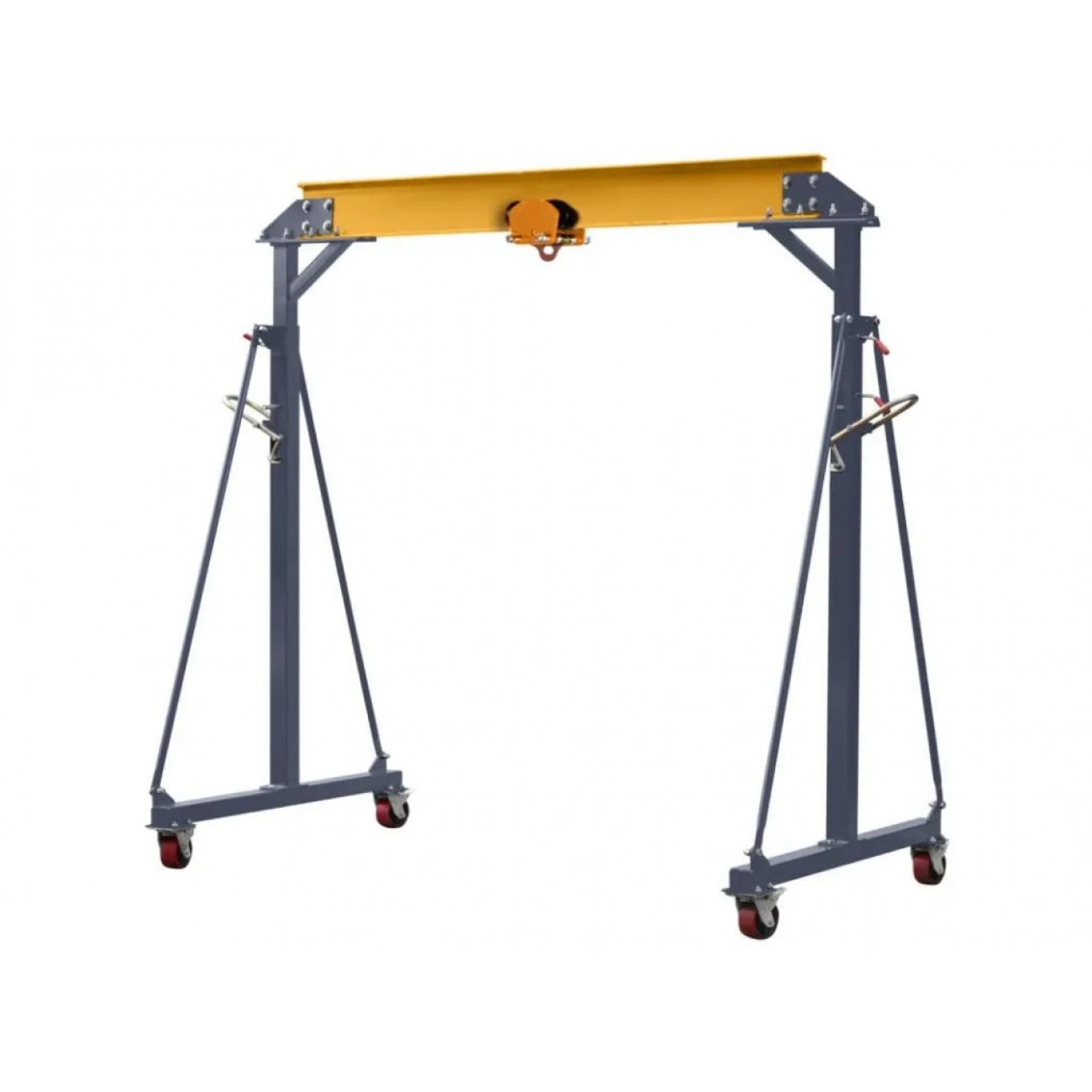 Кран оснащений чотирма поворотними роликами, що забезпечують плавне пересування та маневреність, а вбудовані стоянкові гальма гарантують надійну фіксацію у потрібному місці. Просте регулювання висоти здійснюється в ненавантаженому стані за допомогою важеля та фіксуючих гвинтів.