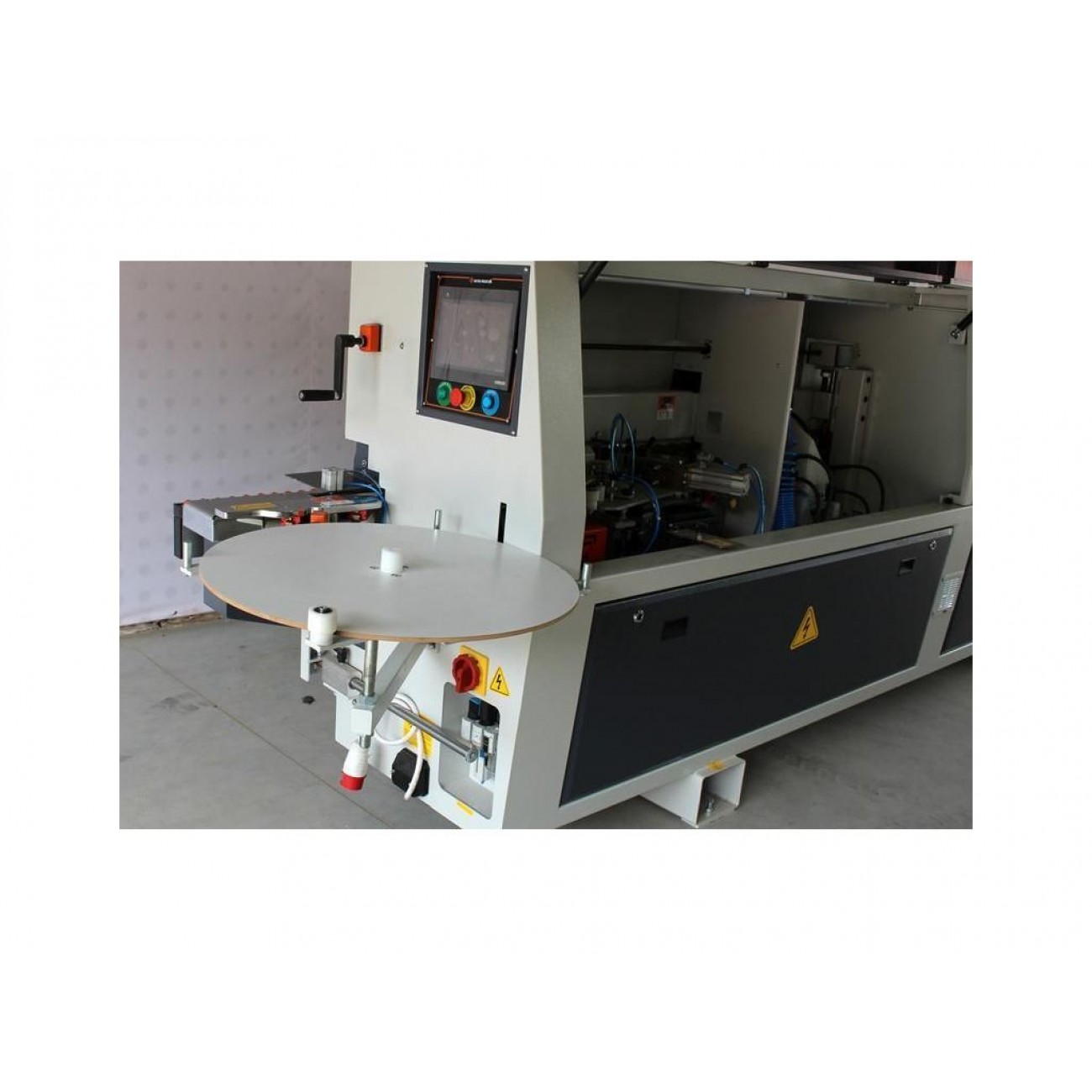 Протяжний ролик для автоматичного завантаження кромки під час подачі панелі. Гільйотина для автоматичного обрізання кромки в рулонах.
