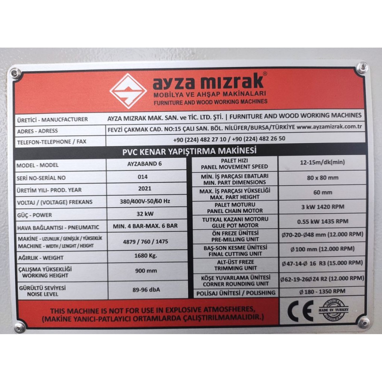 Компанія Ayza Mizrak, заснована на турецькому ринку, прославилася своїми високоякісними рішеннями у сфері обробки матеріалів, зокрема у сфері плитних матеріалів. Розробляючи кромкооблицювальні верстати AyzaBand, компанія використовує передові технології та інженерні рішення, які є результатом співпраці з провідними європейськими виробниками обладнання. Це дозволяє їм створювати верстати, що відповідають найвищим стандартам ефективності, якості та надійності.