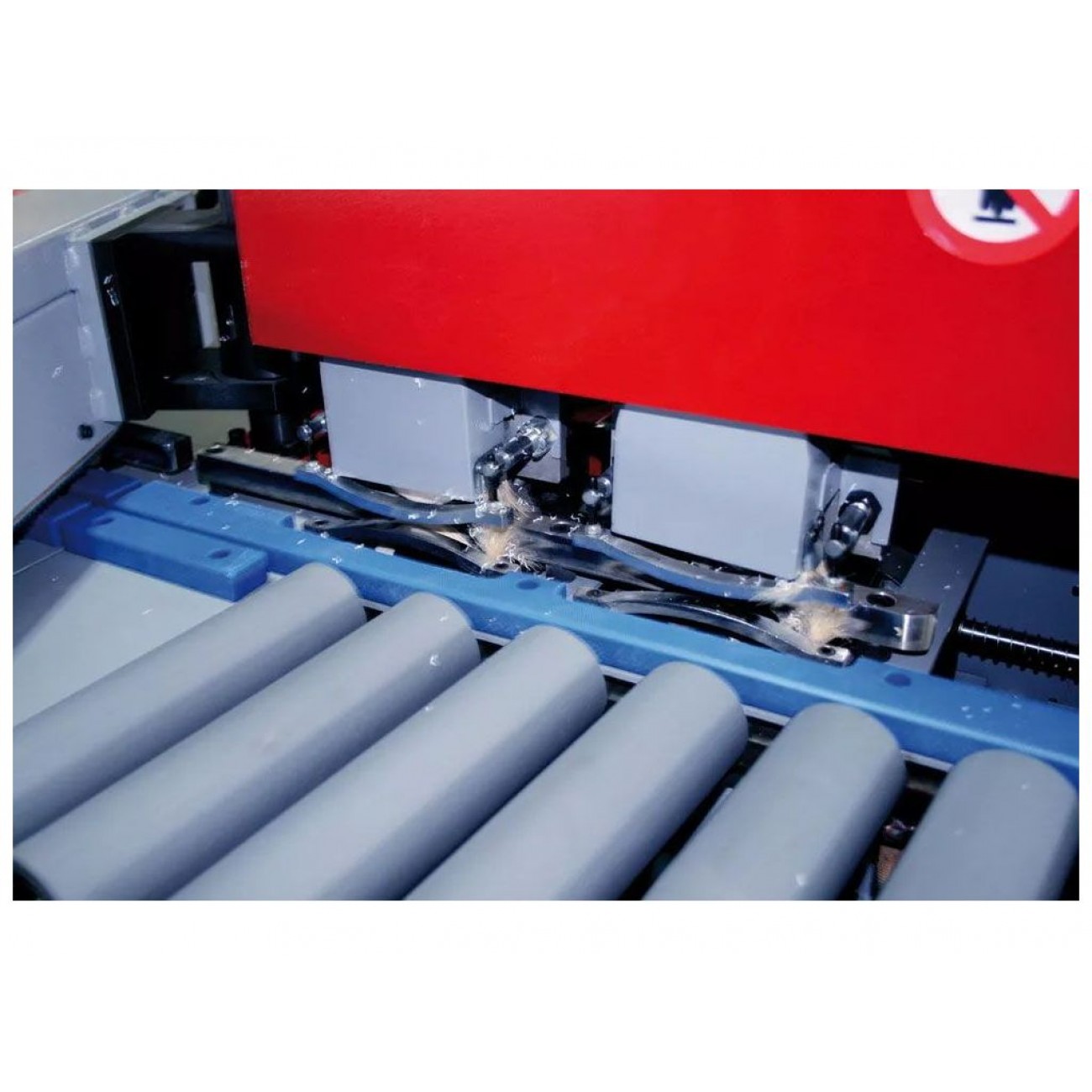 Фрезерний вузол оснащений двома радіусними фрезами R2 і плаваючими копірами, що дозволяють відслідковувати товщину заготовки, що забезпечує відмінну якість оброблюваної поверхні. Вузол полірування усуває шорсткість після фрезерування і надає обробленої кромці блиск.