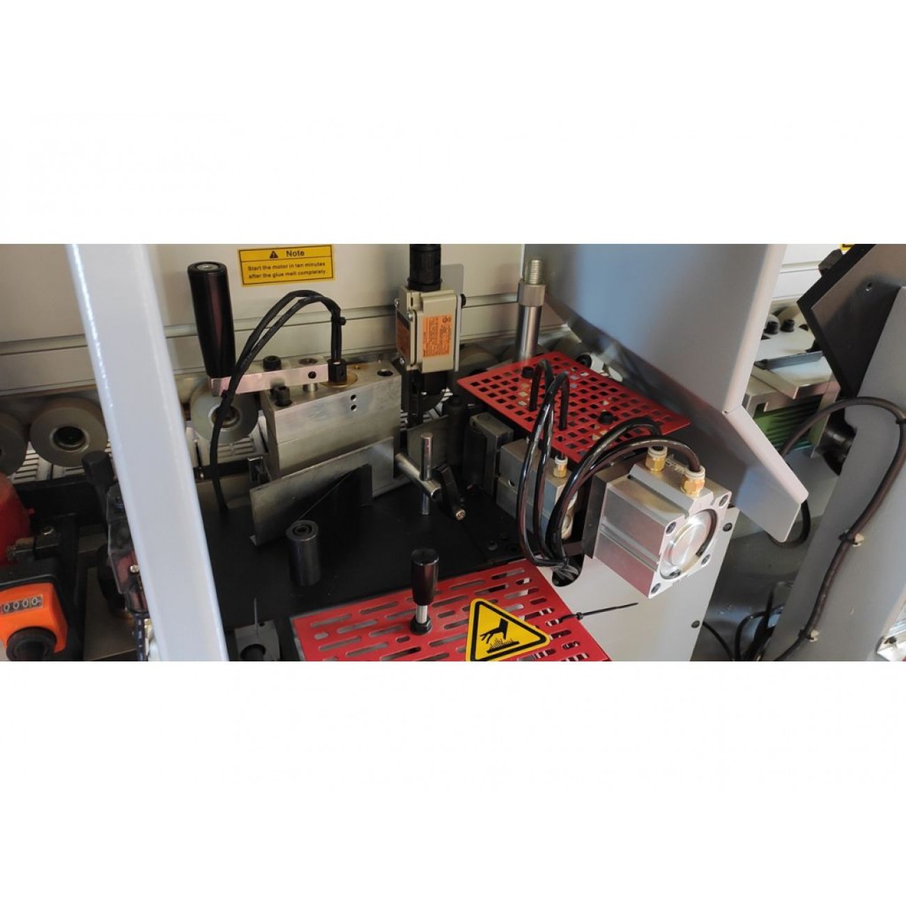 Цей верстат оснащений механізмом регулювання, який має лічильник для точного встановлення різних типів кромок, що забезпечує надійність і ефективність обробки. Більше того, рідкокристалічний дисплей (LCD) дозволяє оператору контролювати та налаштовувати температуру клею, забезпечуючи оптимальні умови для процесу приклеювання кромки.