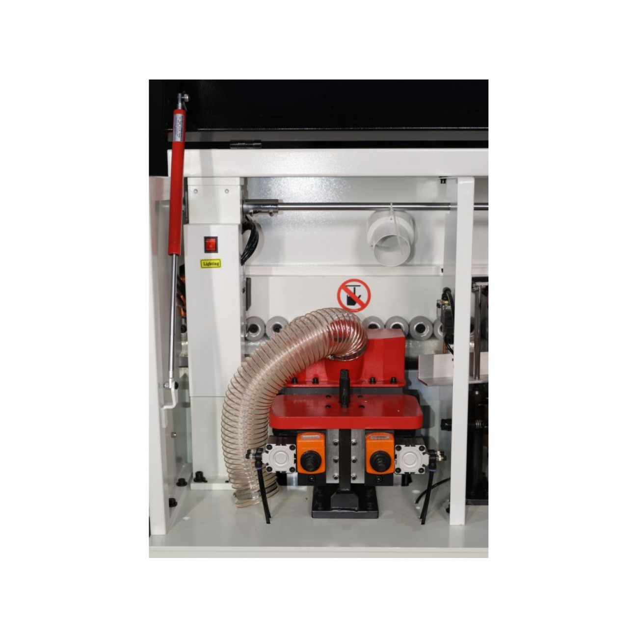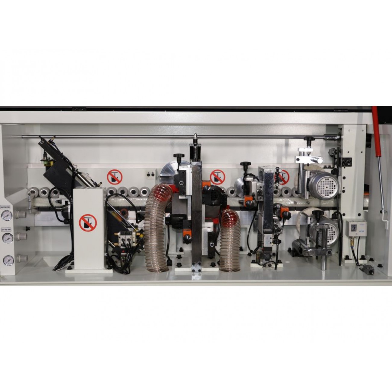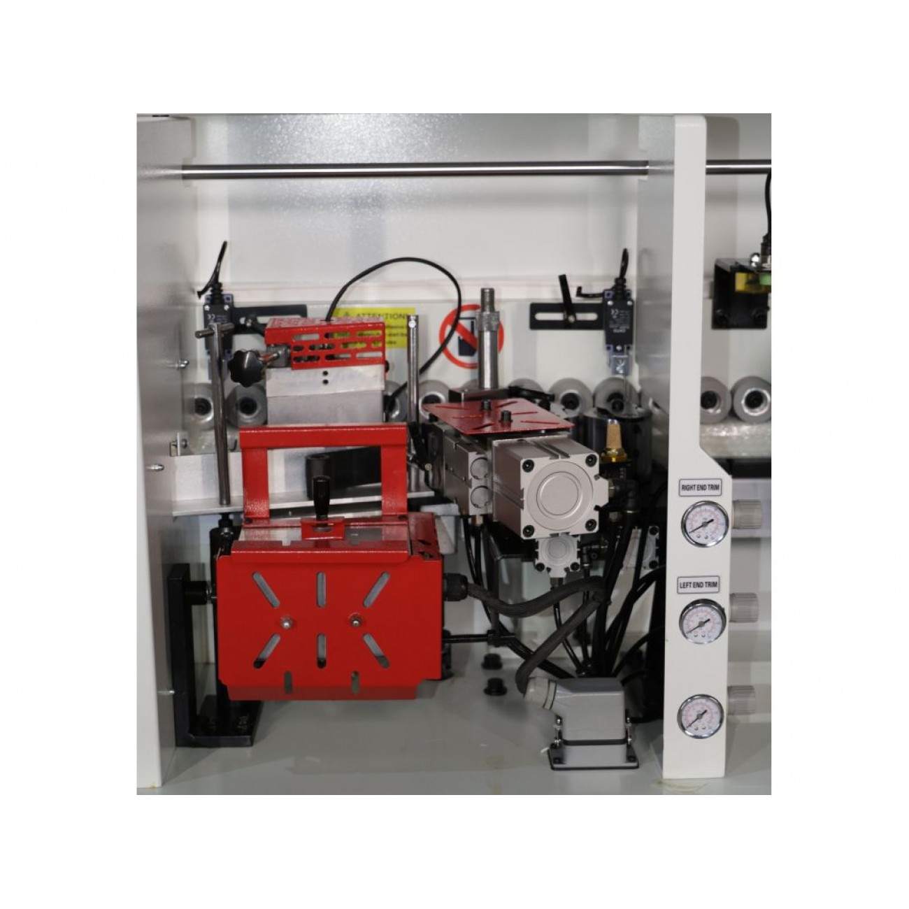 • Гумові притискні ролики, розташовані в 2 ряди, забезпечують надійну фіксацію і точне транспортування заготовок