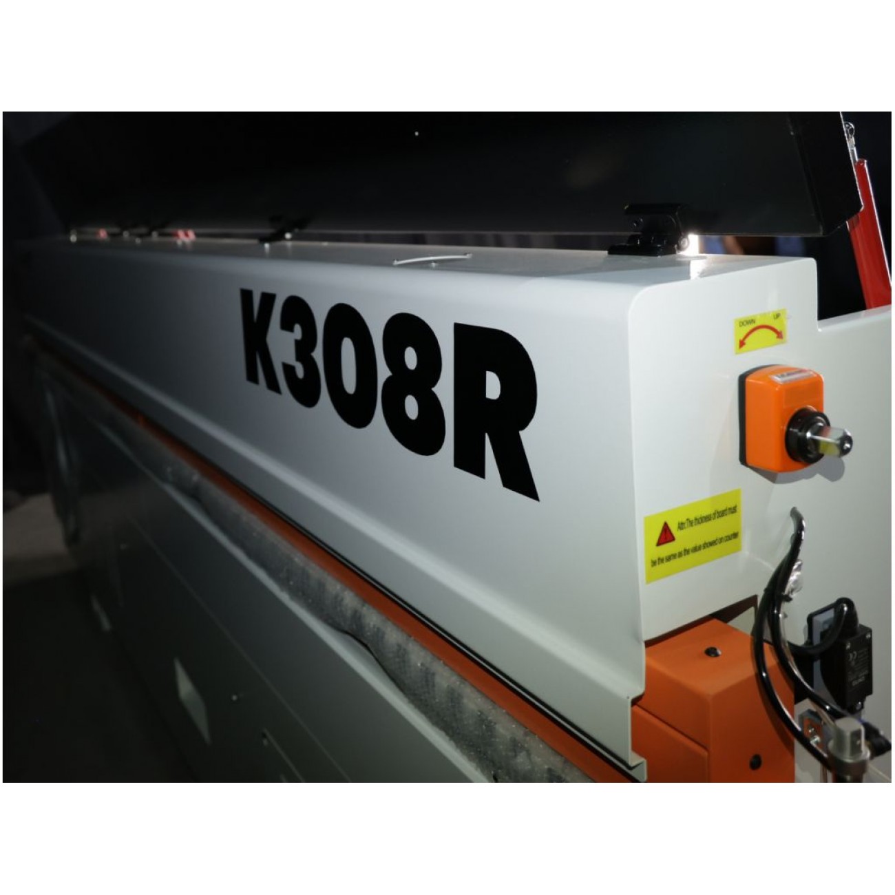 Автоматичний 8-операційний кромкооблицювальний верстат прохідного типу MAST Holztechnik K308R призначений для прямолінійної поклейки меблевих деталей з ЛДСП, МДФ і фанери. Підходить для меламінових кромок, ПВХ та ABS товщиною до 3 мм. Оснащений усіма критично важливими вузлами. Пульт управління Тачскрін (Delta) українською мовою забезпечує просте і зрозуміле управління кожним вузлом.