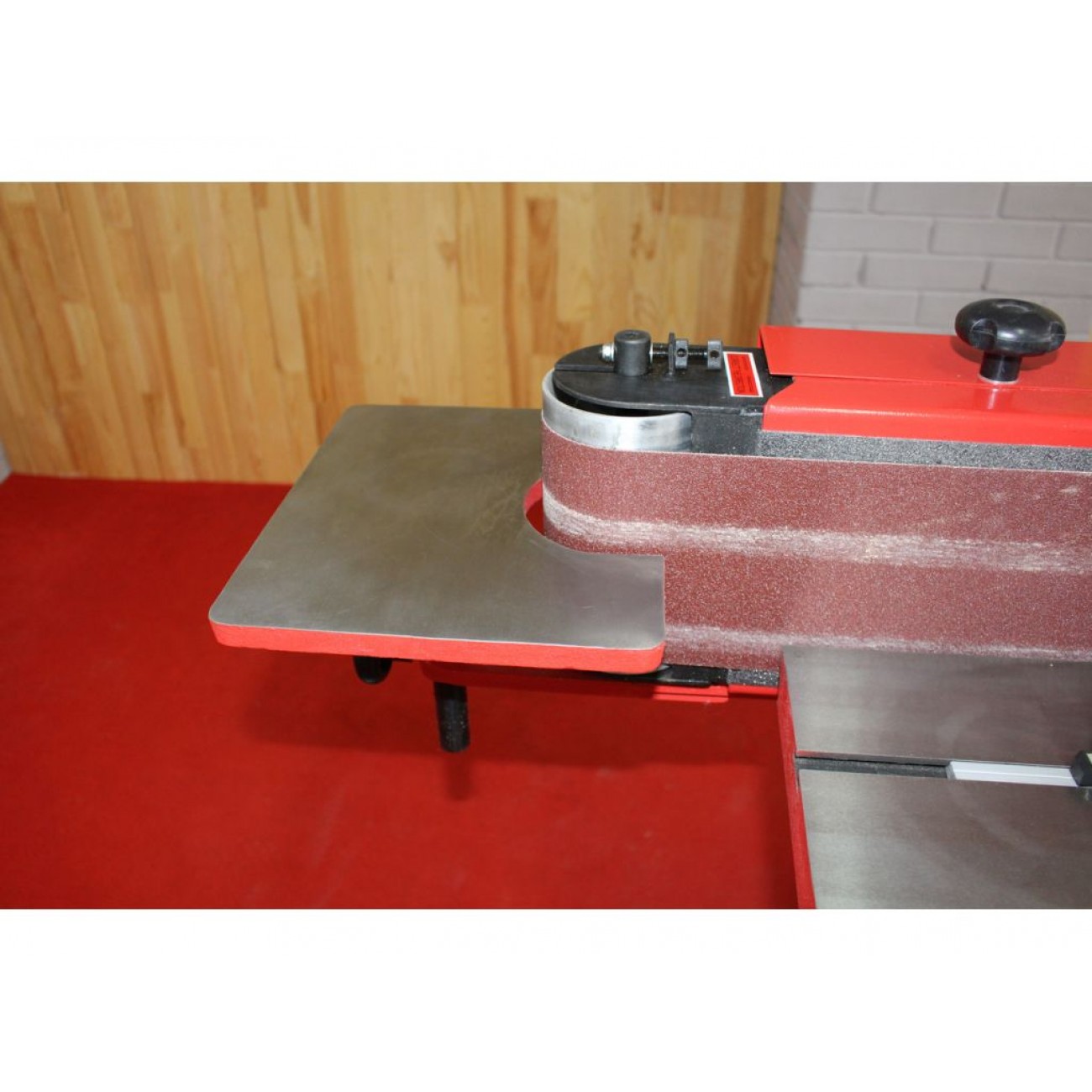 Шліфувальна стрічка має плавний хід і постійну швидкість 16 м/с. Стрічку можна легко замінити за допомогою швидкозатискного пристрою. Шліфувальний вузол має можливість повороту від 0 до 90° для зручного вертикального, горизонтального і кутового шліфування. Упор з поворотом від -45° до + 45° допомагає якісно обробляти скоси. Робочий стіл регулюється по висоті і має Т-подібний паз для фіксації заготовки. Верстат оснащений трифазним двигуном потужністю 1,5 кВт. Замовити цей та інші шліфувальні верстати Київ з доставкою по Україні можна в інтернет-магазині KMA.UA.