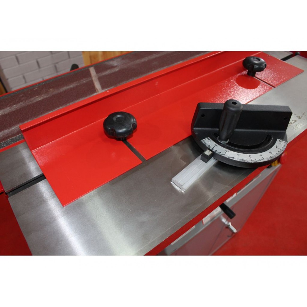 Зручне регулювання столу за допомогою маховика. Стіл має Т-подібний паз