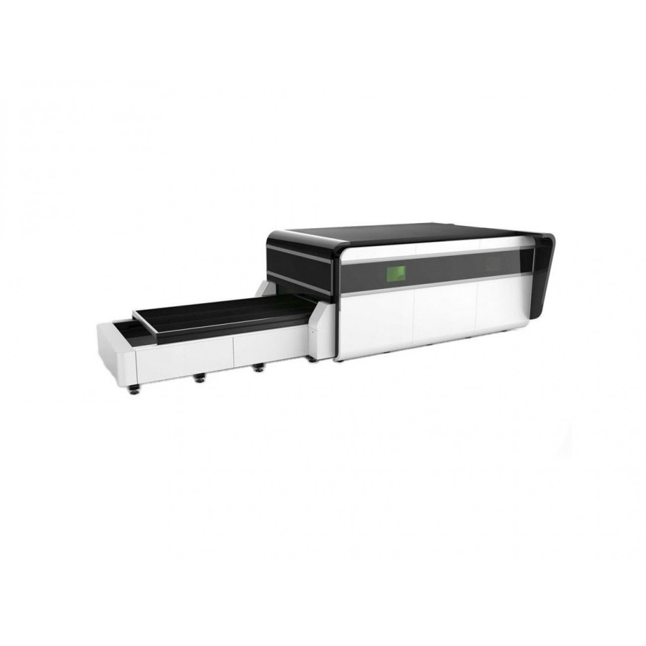 - Волоконний лазер: Верстат оснащений волоконним лазером, який забезпечує високу ефективність та точність різання різних матеріалів, таких як метал, пластик, дерево та інші.