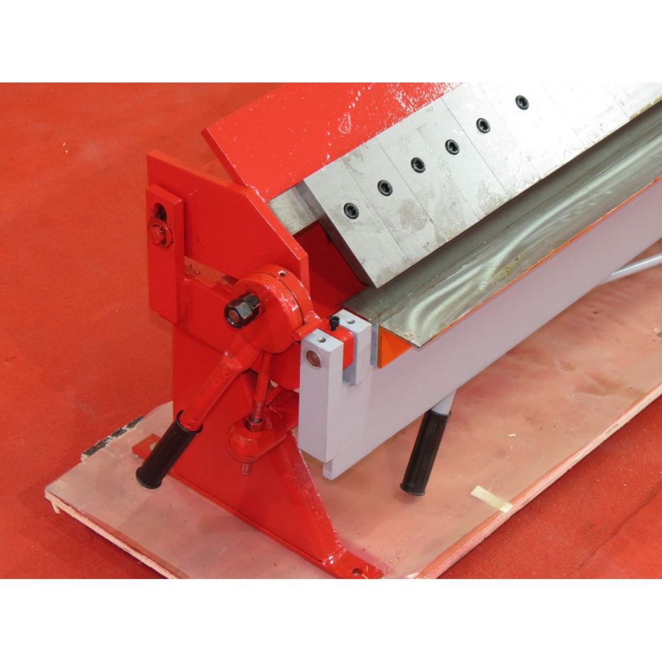 Зручний ексцентриковий прижим забезпечує надійну фіксацію листа, а жорстка конструкція верстата сприяє максимально точному виконанню завдань. В основі є отвори для кріплення верстата на робочому столі. Також можна додатково замовити підставку (опція).