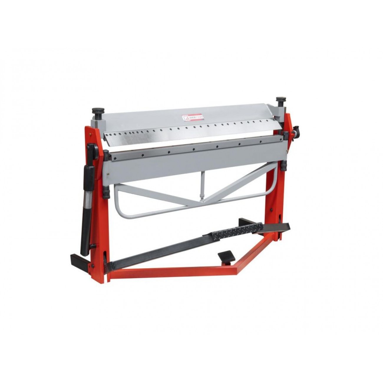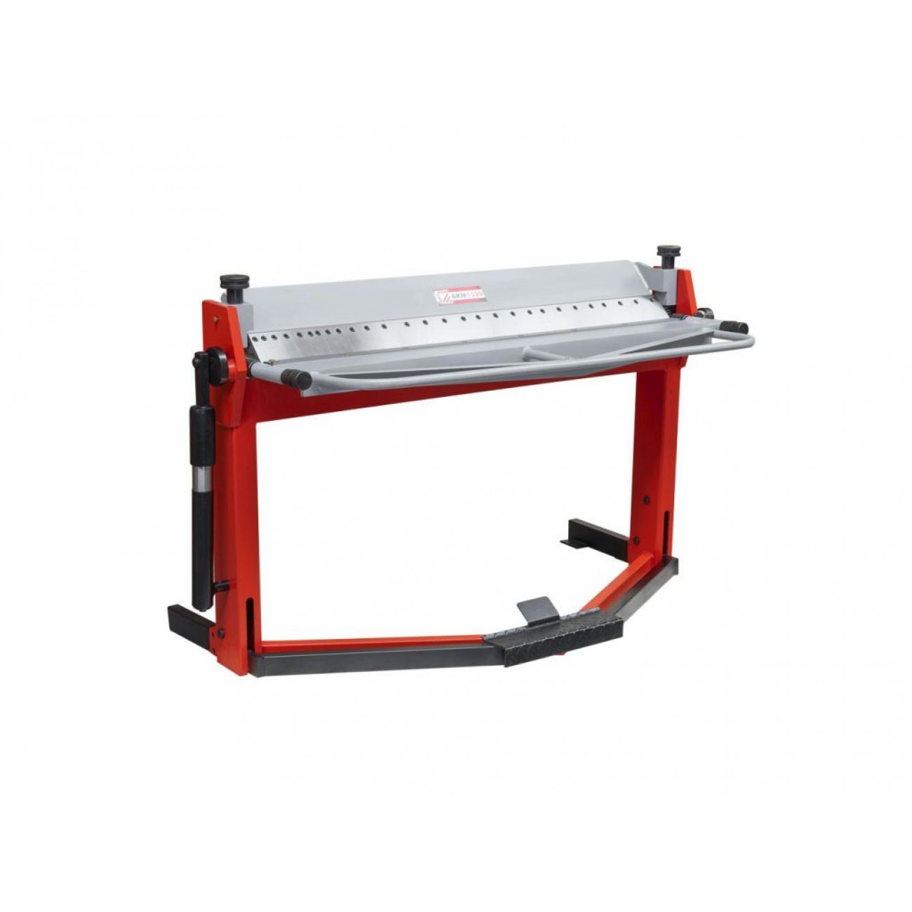 Верстат має міцну, виготовлену з високоякісних матеріалів конструкцію, яка забезпечує якісне формування вигинів. Конструкція верстата має вертикальний хід притискної балки, що дозволяє фіксувати заготовки з строго паралельними поверхнями і сильнішим притиском по всій довжині верстата, порівняно зі звичайними осьовими притисками. Опускається верхня балка за допомогою ножної педалі. Система пружин згинальної балки полегшує роботу оператора на верстаті. Робочі елементи можна знімати і переміщувати, що дозволяє максимально налаштувати верстат під конкретну заготовку. Маркування на кутомірі полегшує налаштування кута згину. Модель не має обмеження глибини подачі листа.