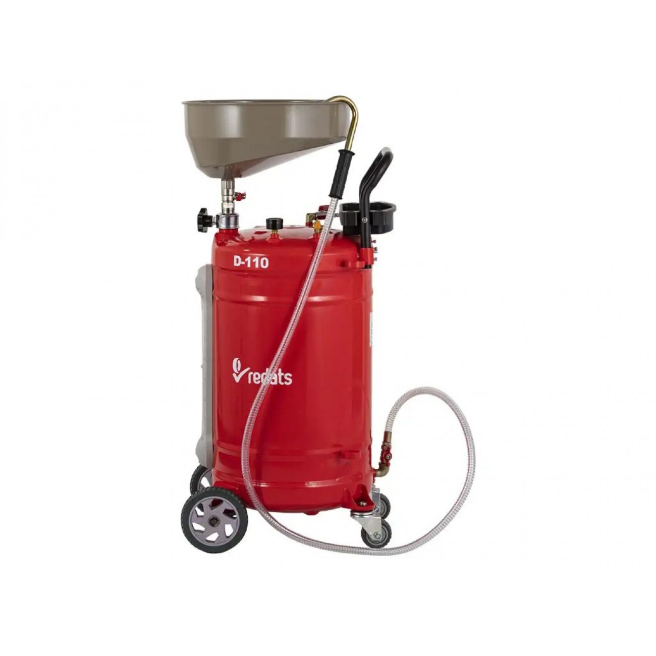 Маслозливач з чашею 80 л REDATS D-110 забезпечує зручне і просте зливання моторного мастила з автомобіля. Герметична чаша об’ємом 80 літрів дозволяє безпечно зберігати відпрацьоване мастило без потреби у відрах і бочках. Завдяки працюючому під тиском механізму можна швидко та легко злити мастило з чаші для подальшої утилізації.