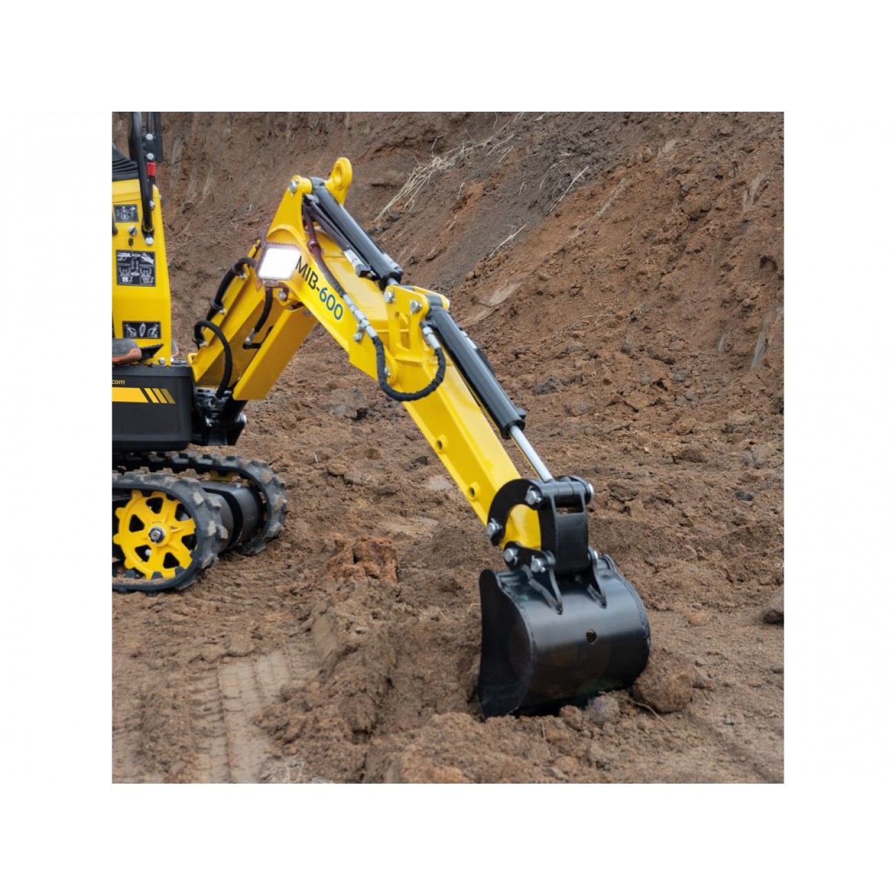 Міні-екскаватор BAMATO MIB-600 оснащений різноманітними практичними функціями, які роблять його універсальним, компактним і зручним у використанні міні-екскаватором. Незалежно від того, чи потрібно вам виконувати роботи в обмеженому просторі, наприклад, в будівлях, або невеликі завдання в приватному саду, де немає місця для великих машин, MIB-600 завжди буде поруч з вами як цінний помічник. Наш універсал особливо добре підходить для робіт навколо вашого будинку, наприклад, для дренажу. Завдяки можливості повороту стріли на 70° вліво і вправо ви можете працювати точно і ефективно, а робоча зона MIB-600 оснащена нековзним і ударостійким гумовим покриттям для забезпечення надійної опори. Міні-екскаватор також вражає своєю надзвичайно вузькою конструкцією і компактними розмірами, які дозволяють легко маневрувати ним через вузькі ворота і доріжки до робочого майданчика.