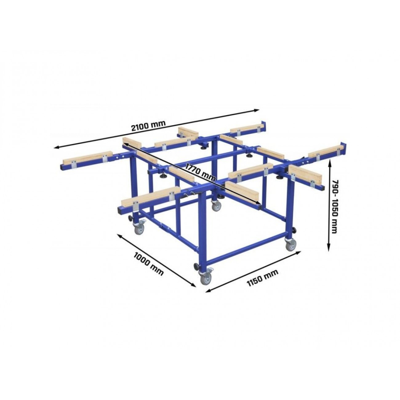 Регульована висота підйому до 1000 мм. На поверхні столу є дерев'яні накладки, які не пошкоджують поверхню обробленого матеріалу.