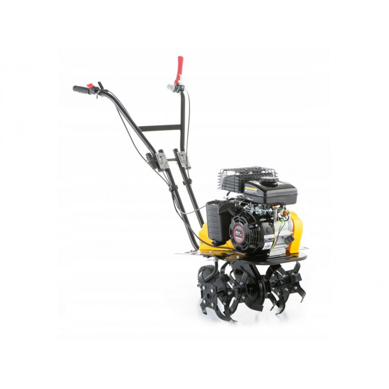 Обробка здійснюється за допомогою 6 фрез вигнутої форми, на які встановлюються 24 зносостійкі леза. Конструкція мотокультиватора дозволяє встановлювати різну кількість ріжучих сегментів, тим самим регулюючи ширину проходу на 3 рівні - 26 см, 37 см і 43 см. Ручки для керування мають ергономічну форму і прогумоване покриття для зручного захвату. Вузька, компактна конструкція і невелика вага дозволяють легко працювати з мотокультиватором на обмежених і важкодоступних ділянках. Цей та інші надійні мотокультиватори ціна яких доступна, можна замовити на нашому сайті.