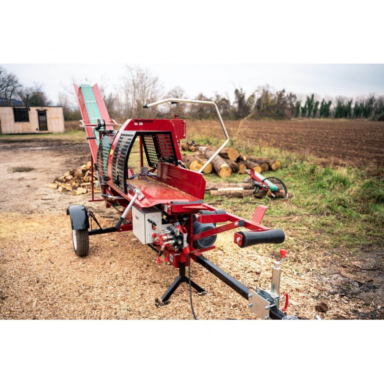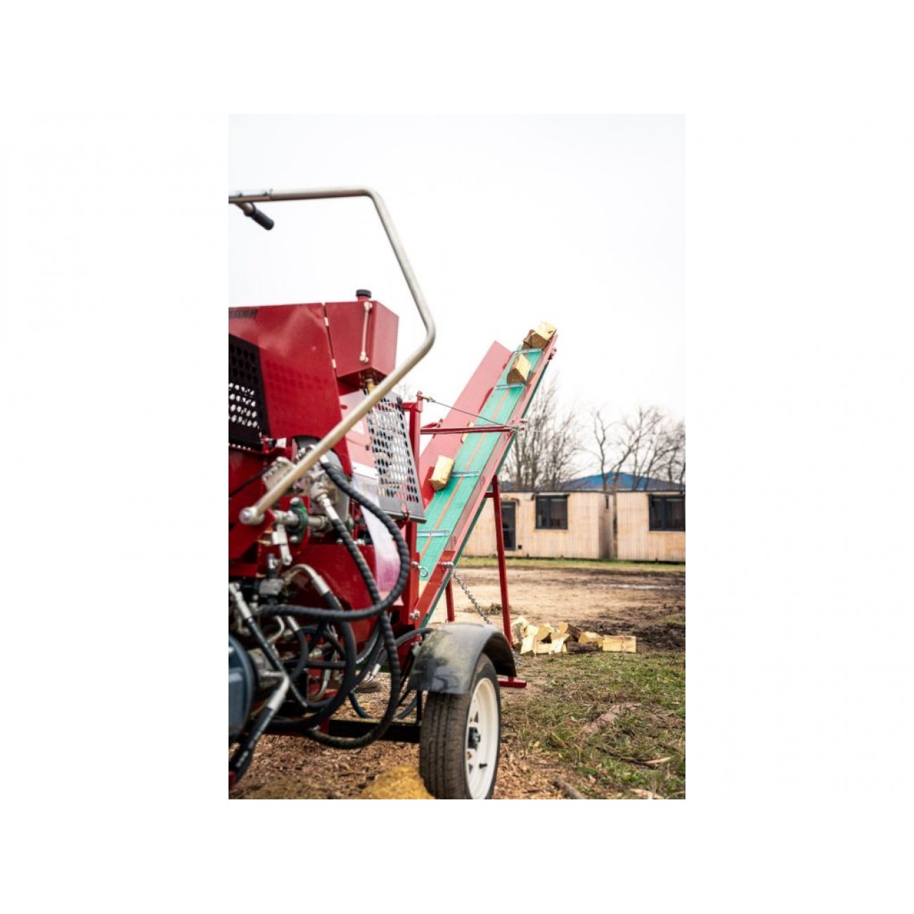 Незважаючи на високу силу розколювання та великий діаметр, дровокол залишається відносно компактним. Оснащений дишлом, його можна прикріпити до будь-якого зчіпного пристрою причепа, що полегшує транспортування. Крім того, двоє людей можуть легко переміщати дровокол вручну на рівній поверхні без транспортного засобу.