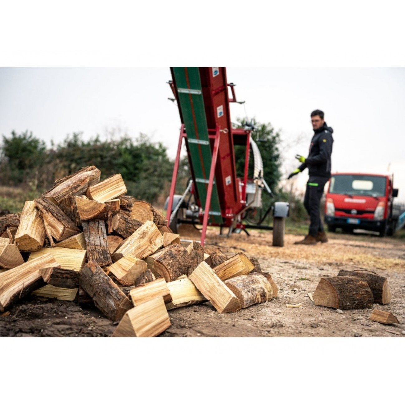 Довжину дров можна плавно регулювати до 50 см. Розколюючий клин можна вручну регулювати в різних положеннях за допомогою важеля, дозволяючи розколювати в 2, 4 або навіть 6 напрямках, залежно від товщини деревини.