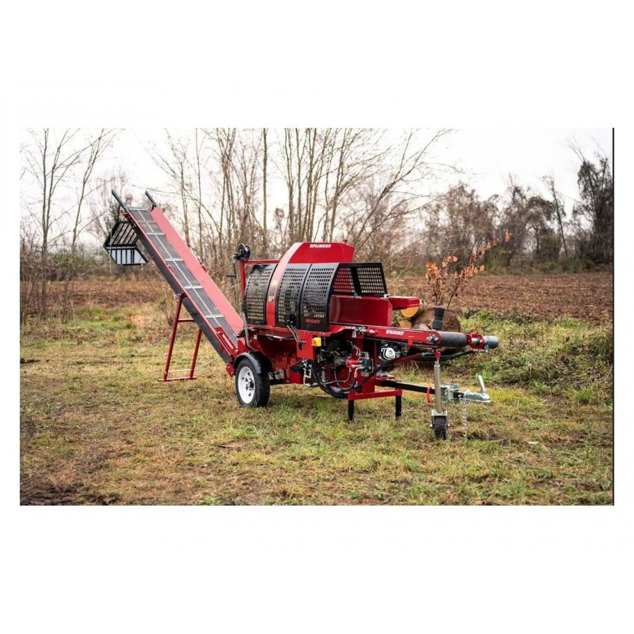 Додаткове обладнання, таке як підйомник колод або ланцюговий конвеєр, ще більше полегшує робочий процес. Ланцюговий конвеєр дозволяє завантажувати кілька колод за допомогою вилкового навантажувача, крана або фронтального навантажувача, усуваючи необхідність піднімати одну колоду за раз.