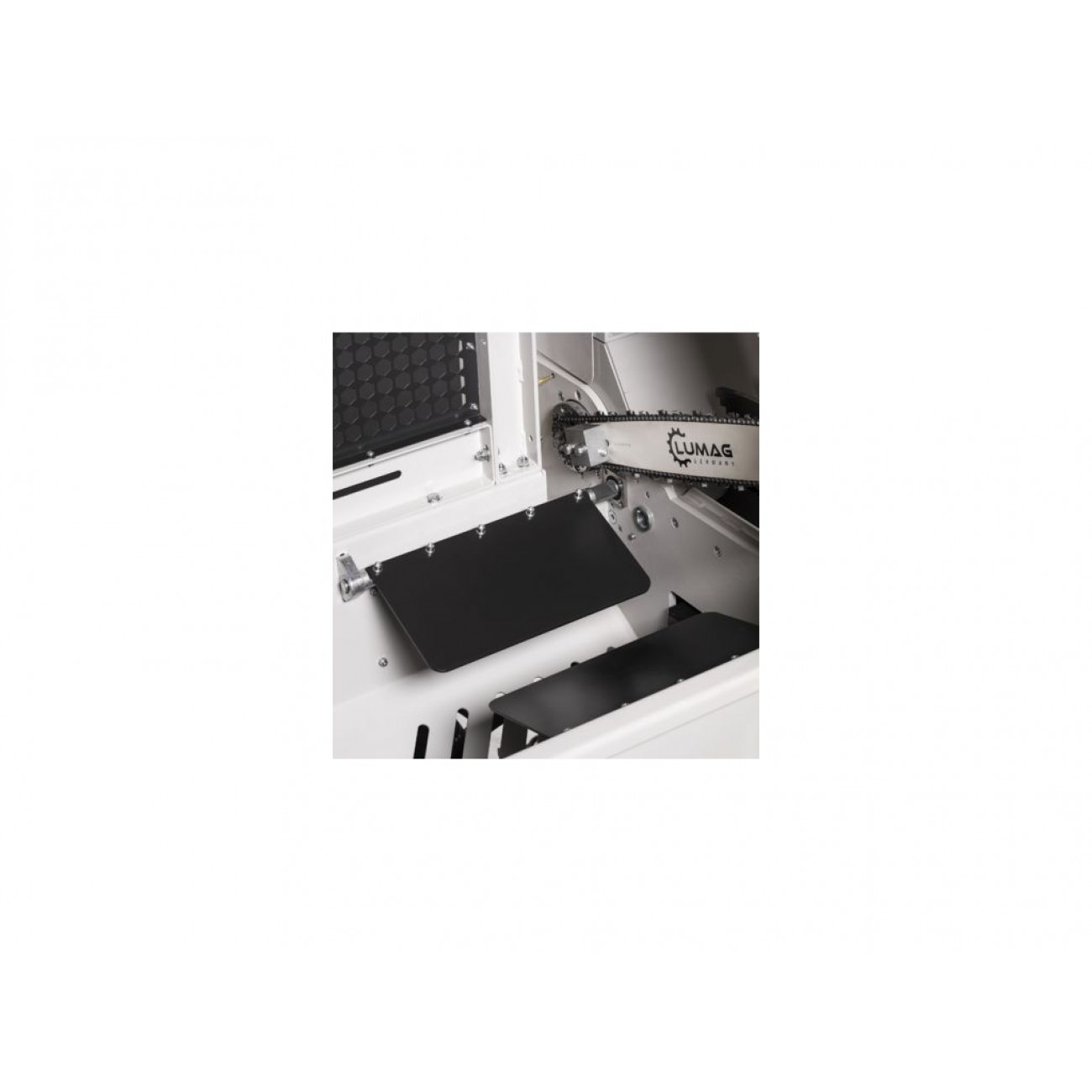 Напівавтоматична машина для різання і розколу дров Lumag SSA 400GHPROS — це надійний і потужний інструмент, здатний впоратися навіть із великими колодами діаметром до 38 см завдяки бензиновому двигуну потужністю 10,0 кВт. Оснащена високоякісним ланцюгом і новою системою механічного змащення, що забезпечує тривалий термін служби, ця машина поєднує гідравлічну пилку, тримач колод і поперечне регулювання для швидкої та зручної роботи. Інтегрований гідравлічний конвеєр ефективно транспортує матеріал, а дві механічні заслінки запобігають нахилу деревини перед розколом. Завдяки автоматичному стрічковому конвеєру для видалення матеріалу, ця машина оптимізує процес обробки деревини. У комплект входить електричний стартер із батареєю, лічильник годин роботи, регулюючий клапан, насос PARKER і гідравлічний двигун, що забезпечує надійність і довговічність роботи.