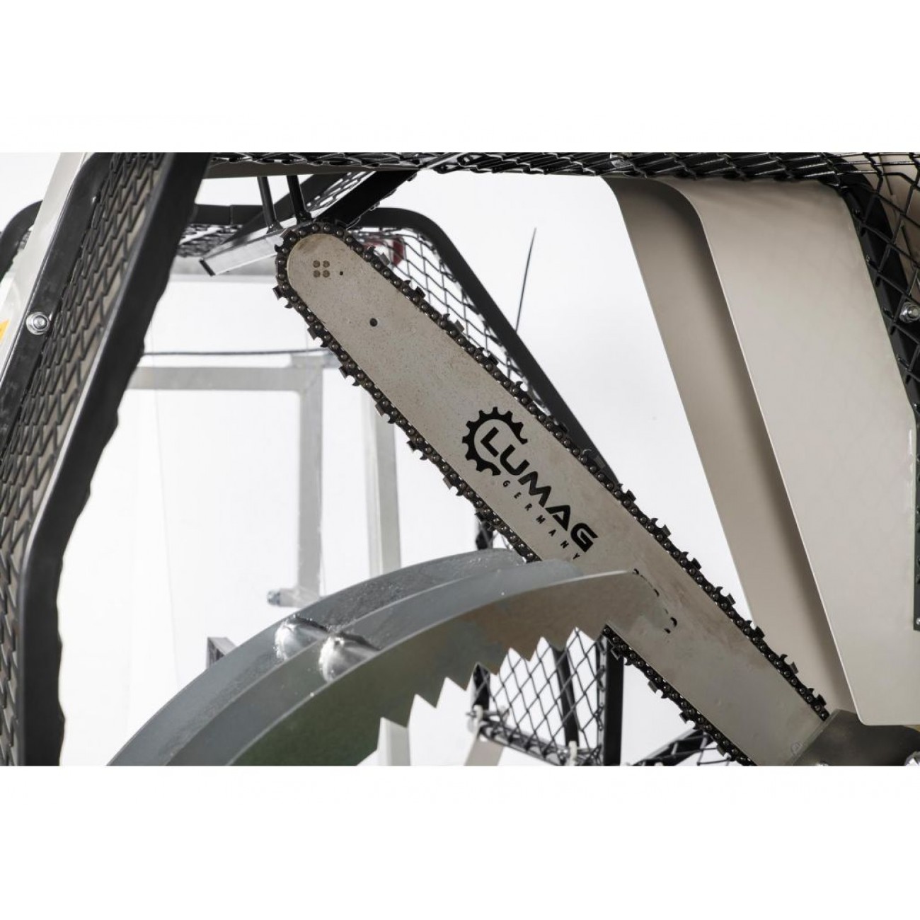Напівавтоматична машина для різання і розколу дров Lumag SSA500ZH-PRO, гідравлічний - це комбінація трьох верстатів. Ланцюгова пила розпилює деревину на потрібну довжину, потім колун розколює попередньо розрізаний брусок на дві або чотири частини, і оброблена деревина транспортується стрічковим конвеєром у вибране місце.