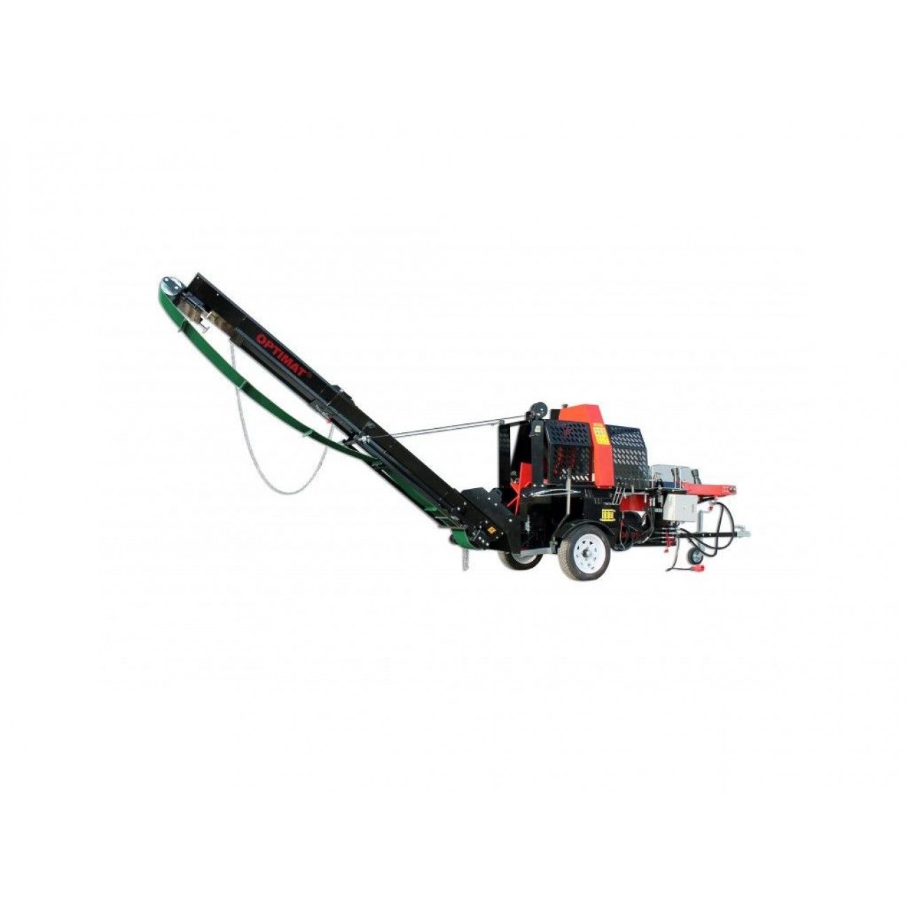 Напівавтоматична машина для різання і розколювання дров OPTIMAT Titanium CLS20-E 480 - це ефективне обладнання, яке виконує одразу 3 функції: розпилювання колоди на потрібну довжину, розколювання на 4-6 частин і транспортування дров за допомогою конвеєра на довжину до 3,2 м та висоту до 2 м. Максимальний діаметр колоди - 480 мм, довжина розпилювання - до 610 мм. Сила розколювання до 20 тонн і гідравлічний привід ріжучого та розколюючого інструментів забезпечують ефективну роботу з усіма породами деревини. Продуктивність роботи становить 5-8 куб/год (в залежності від породи, діаметру та вологості дерева). Час робочого циклу - 6-9 секунд.