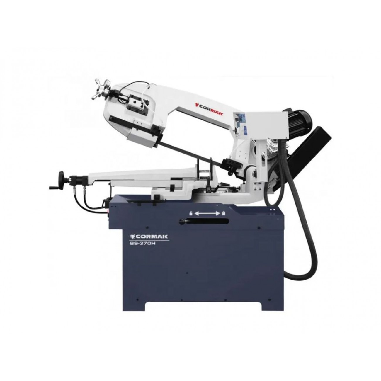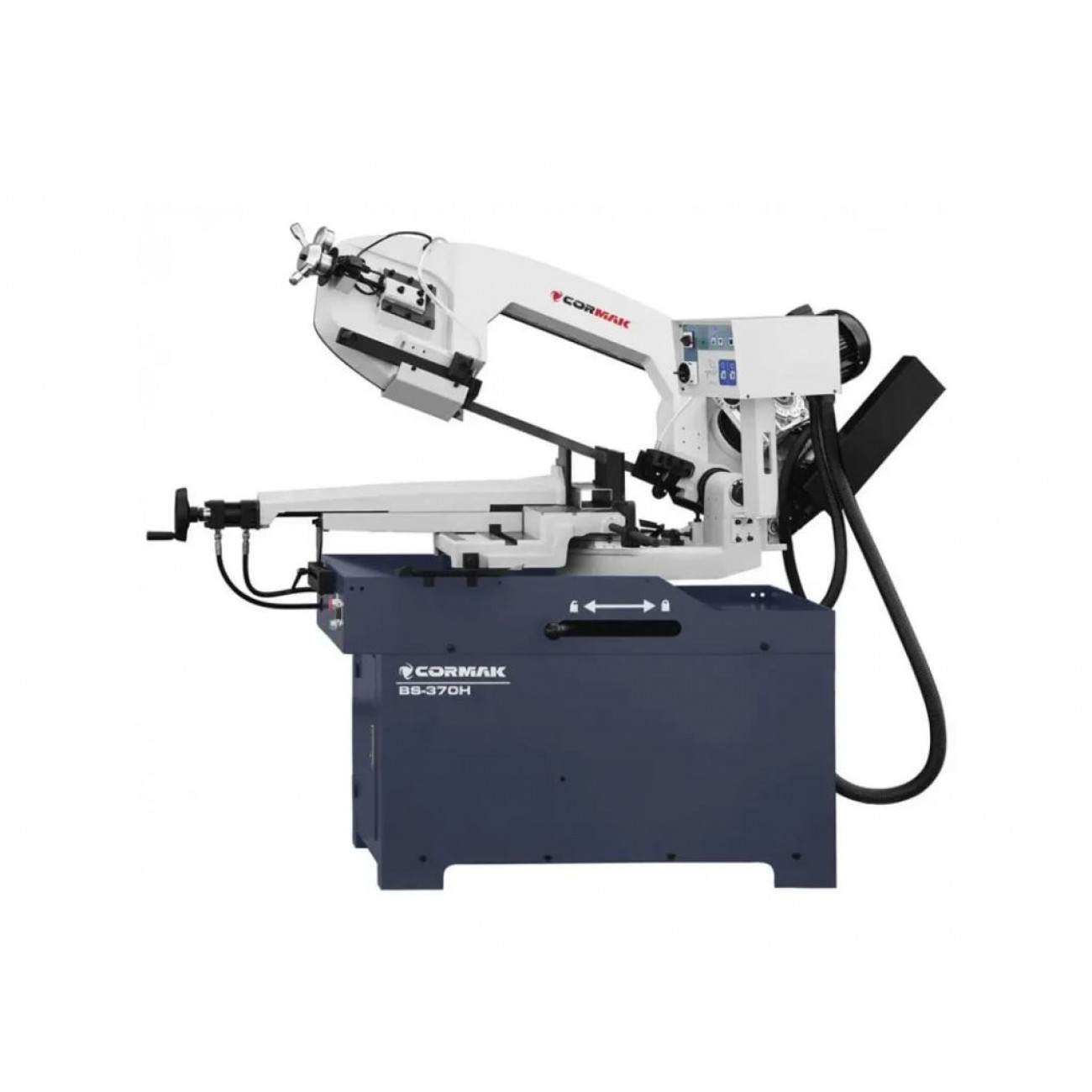 Напівавтоматична стрічкова пила CORMAK BS370H - потужна та надійна напівавтоматична стрічкова пила з можливістю різання під кутами від -45° до +60°. Оснащена гідравлічними лещатами та зручною рукояткою, ця пила є незамінним інструментом у будь-якій слюсарній майстерні. Вона ідеально підходить для обробки труб, профілів та твердих матеріалів. Стрічкові напрямні мають спеціальні твердосплавні пластини і підшипники, що значно підвищує точність різання, термін служби стрічки і зменшує знос обладнання.