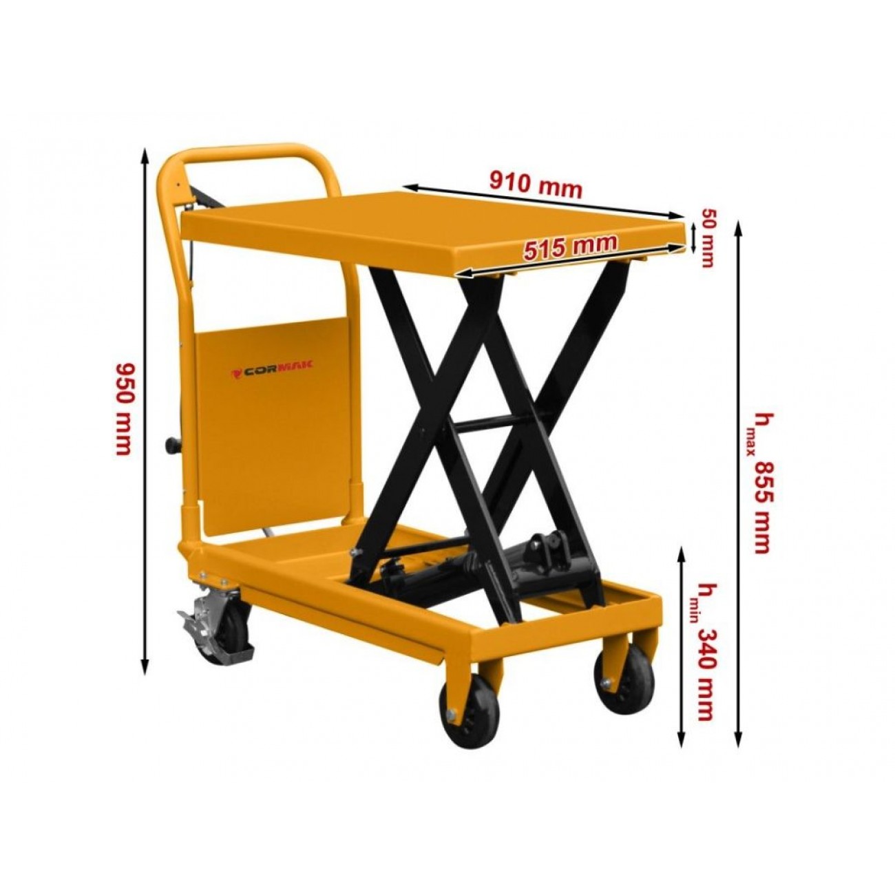 Ножичний візок Cormak TA50 - використовується в автомайстернях при розбиранні двигуна, коробки передач або іншого обладнання. Також і в інших галузях господарства, таких як склади, фабрики, будівельні майданчики.