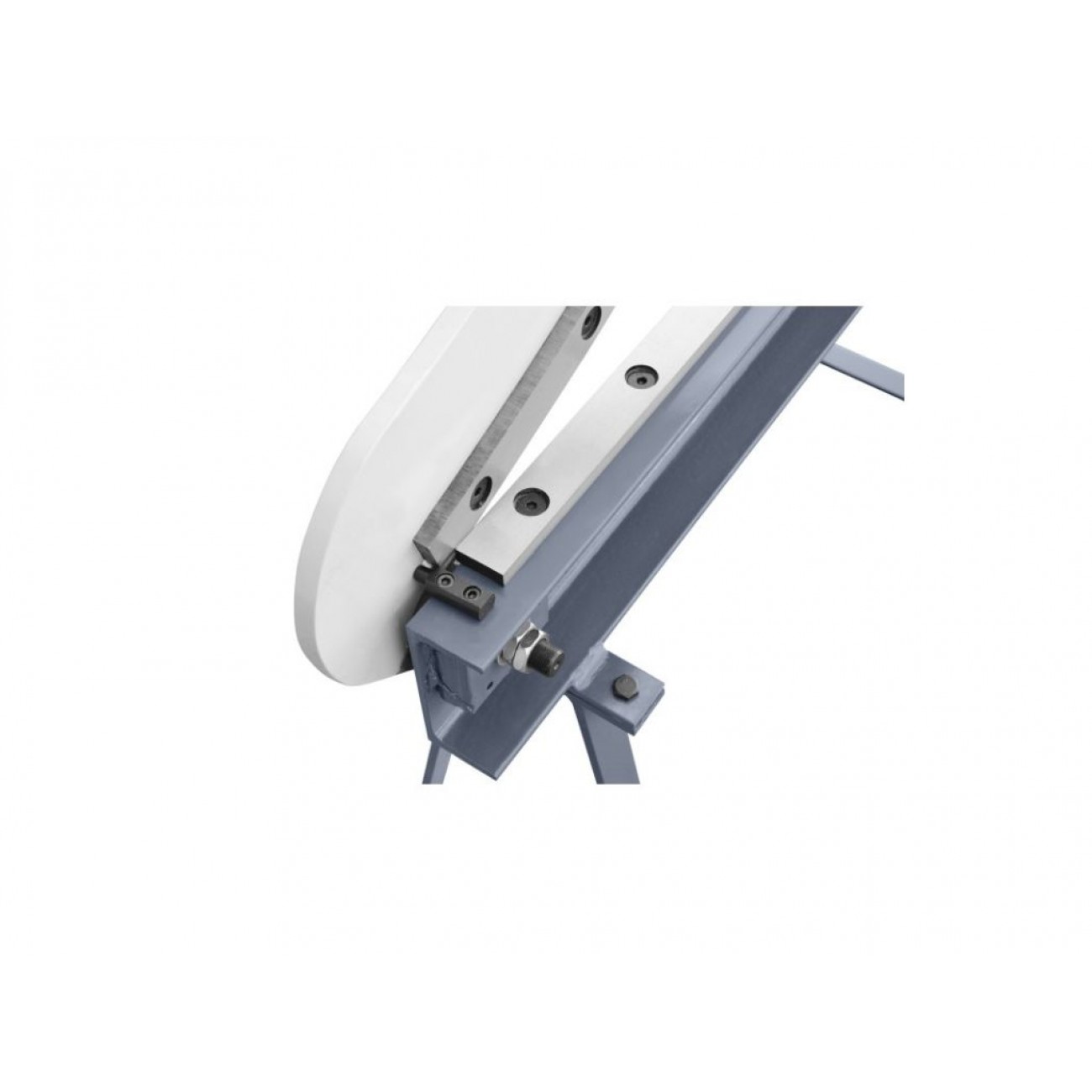 Зручна форма важеля забезпечує надійне утримання і запобігає ковзанню в руці. Якісне лезо здійснює точний і акуратний різ та тривалий час зберігає високі ріжучі властивості. Розбірна конструкція станини та невеликий розмір і вага дозволяють легко транспортувати пристрій і швидко встановлювати його у потрібному місці. Ці шабельні ножиці можуть ефективно використовуватися для розкрою листового металу, а також лінолеуму, пластику й інших м’яких матеріалів у невеликих майстернях різного профілю.