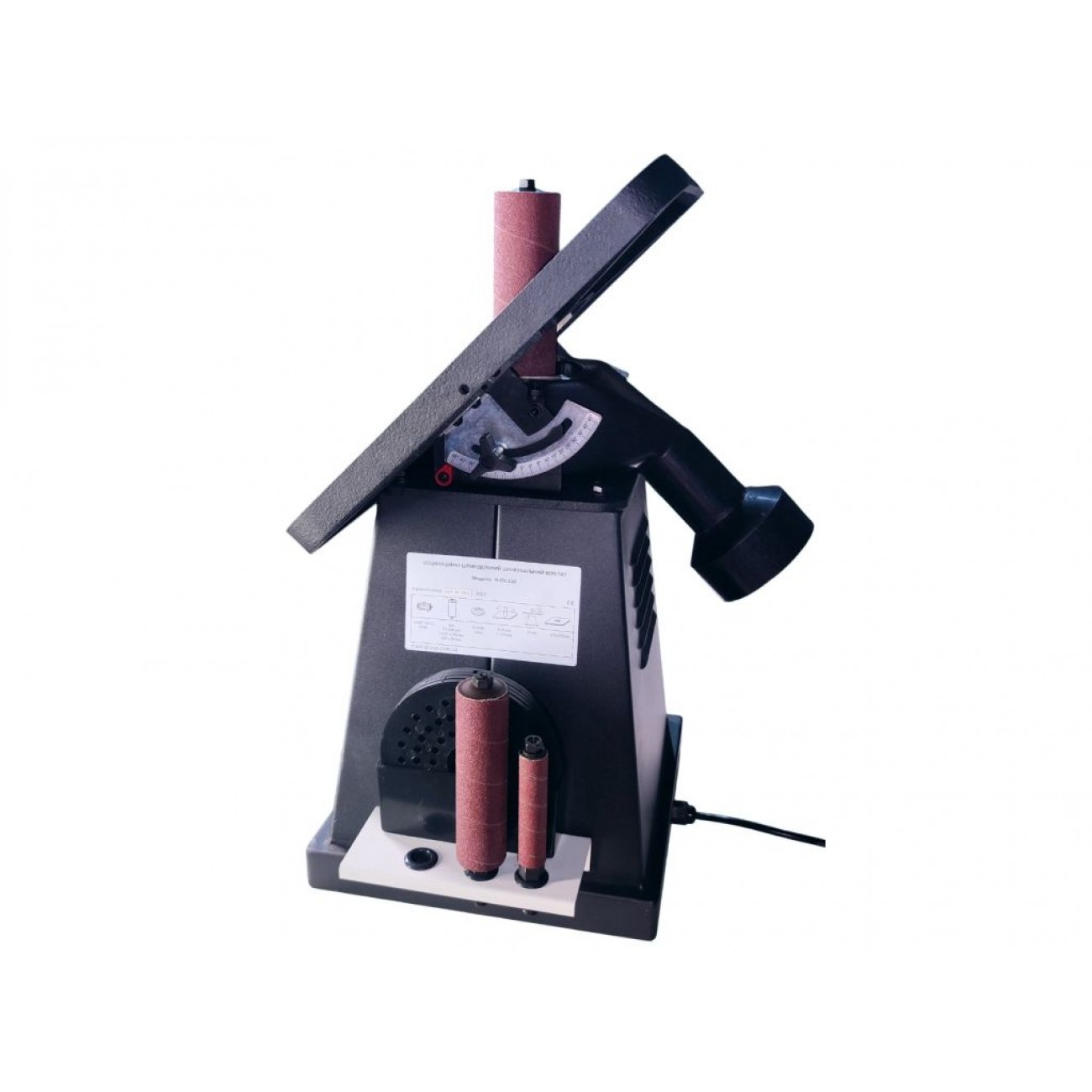 Індукційний двигун потужністю 370 Вт здійснює обертання шпинделя зі швидкістю 1400 об/хв. Вертикальний осциляційний рух шпинделя з ходом 24 мм дозволяє працювати по всій площині абразивної стрічки. Шліфувальну втулку можна легко замінити, а наявність 3 втулок різного діаметру і зернистості дає змогу якісно обробляти деталі різної форми та розміру. Міцний металевий корпус і чавунний стіл з нахилом до 45 градусів в обидві сторони підвищують точність обробки. Щоб замовити цей шліфувальний верстат по дереву, переходьте в каталог нашого сайту.