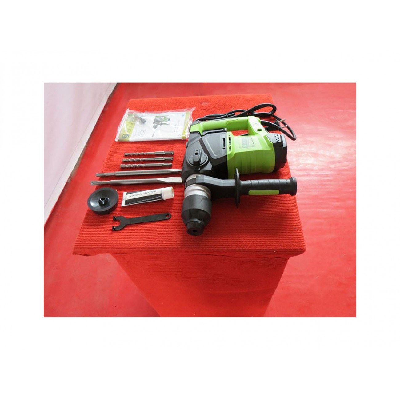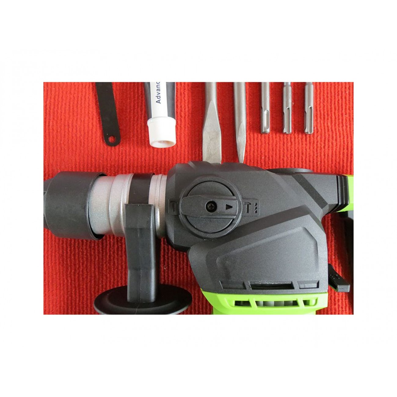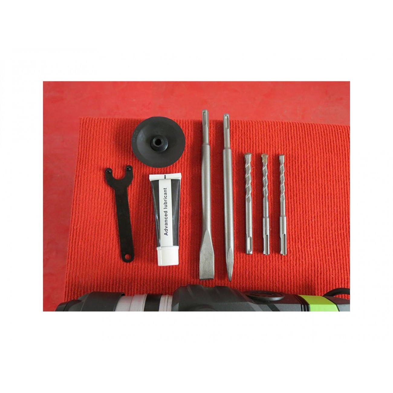 У комплект входить: бури діаметром 8 мм, 10 мм і 12 мм, плоске і загострене зубило, чемодан, мастило.