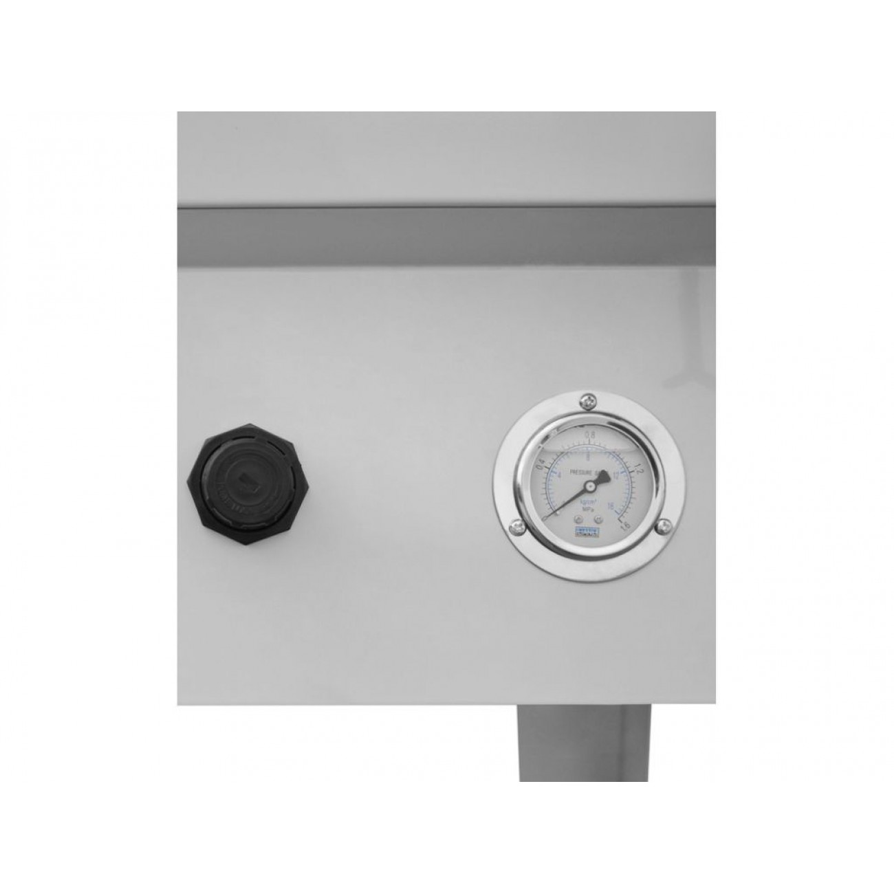 Піскоструминна камера Cormak KDP1000 - це камера ежективного типу для обробки металу, каменю, скла та інших матеріалів за допомогою абразиву під тиском. Ефективно видаляє іржу, корозію, залишки фарби і лаку та інші стійкі забруднення як з плоских поверхонь, так і з деталей складної форми. Об’єм камери 1000 л дозволяє обробляти великі деталі, а фронтальне завантаження - компактно встановити камеру у невеликому приміщенні. Дверцята обладнані телескопічними приводами для легкого завантаження-вивантаження.