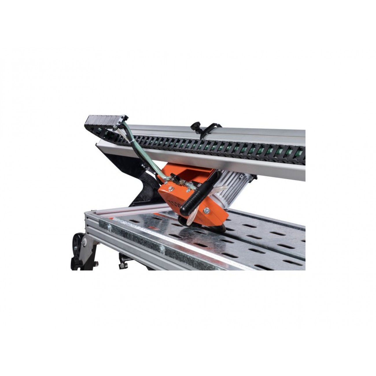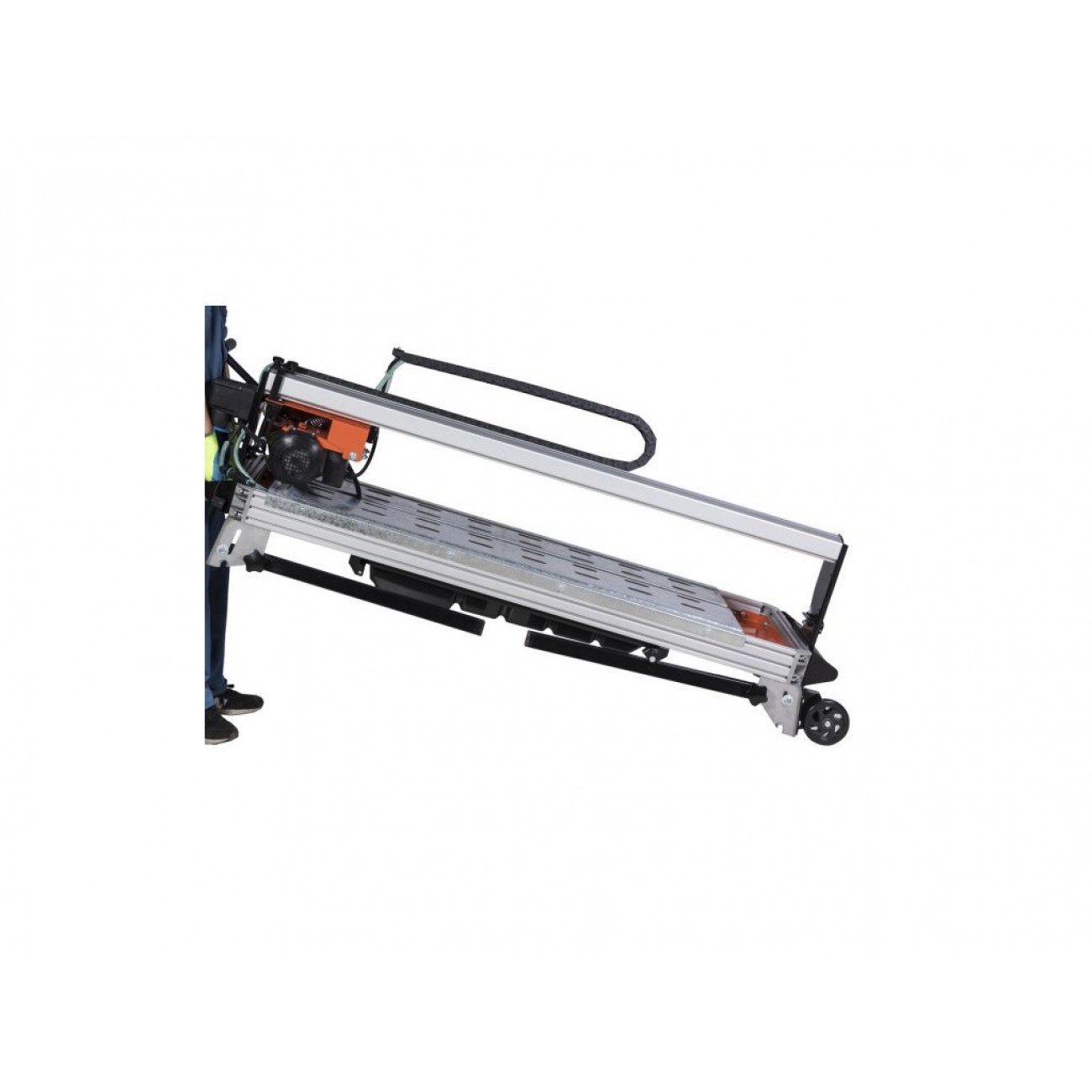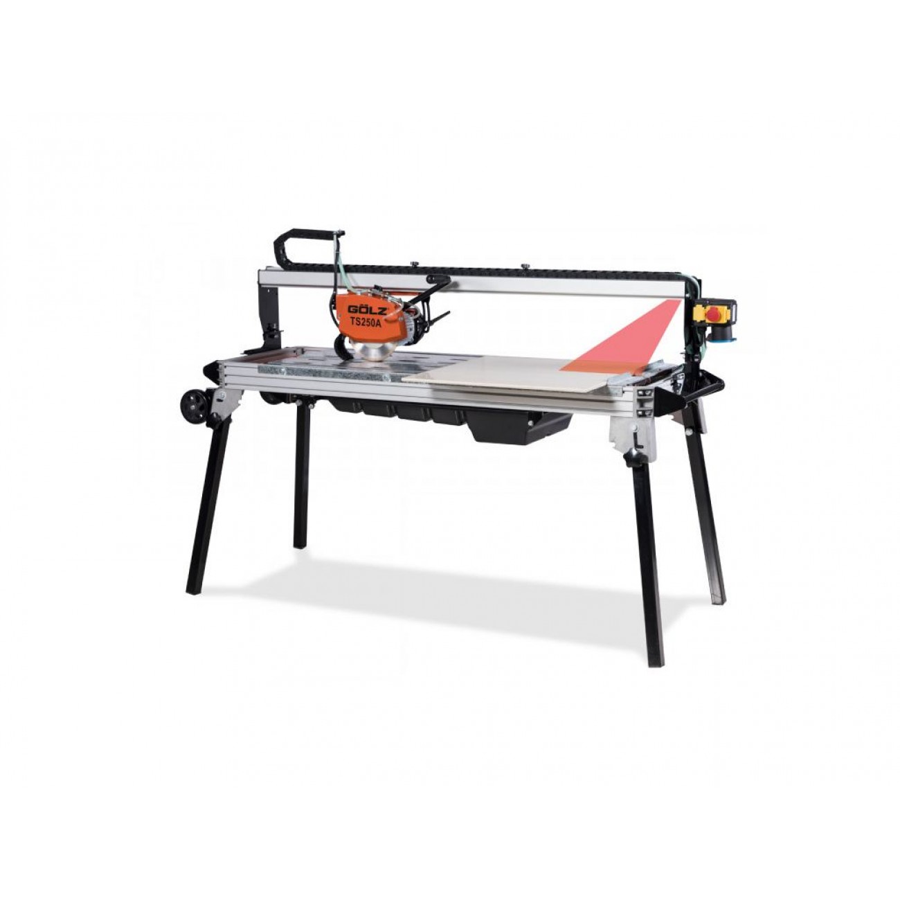 Плиткоріз Gölz TS250A спеціально розроблений для різання широкоформатної плитки та керамічних панелей методом мокрого різання. До нього можна додати подовжувач, який дозволяє різати плитку довжиною до 330 см. Машину можна обладнати до восьми бічними ручками (додаткові аксесуари).
