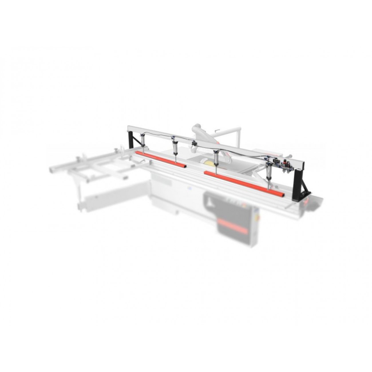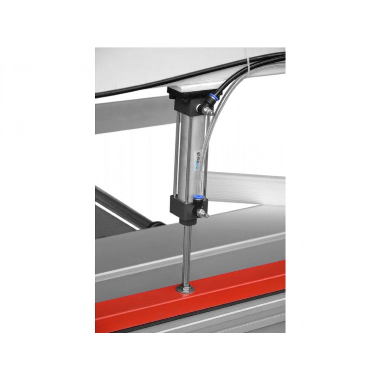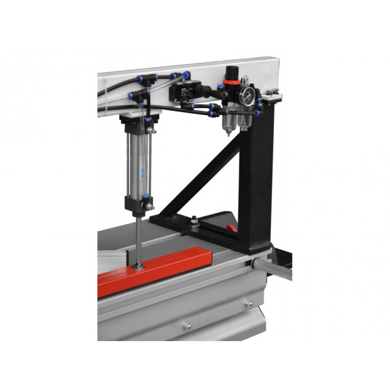 Пневматичний затискач забезпечує точне кріплення матеріалу, що розрізається з пильним столом. В результаті підвищується точність і якість розрізу, що прискорює і полегшує різання пластини. Затискач дуже простий у збиранні та використанні.