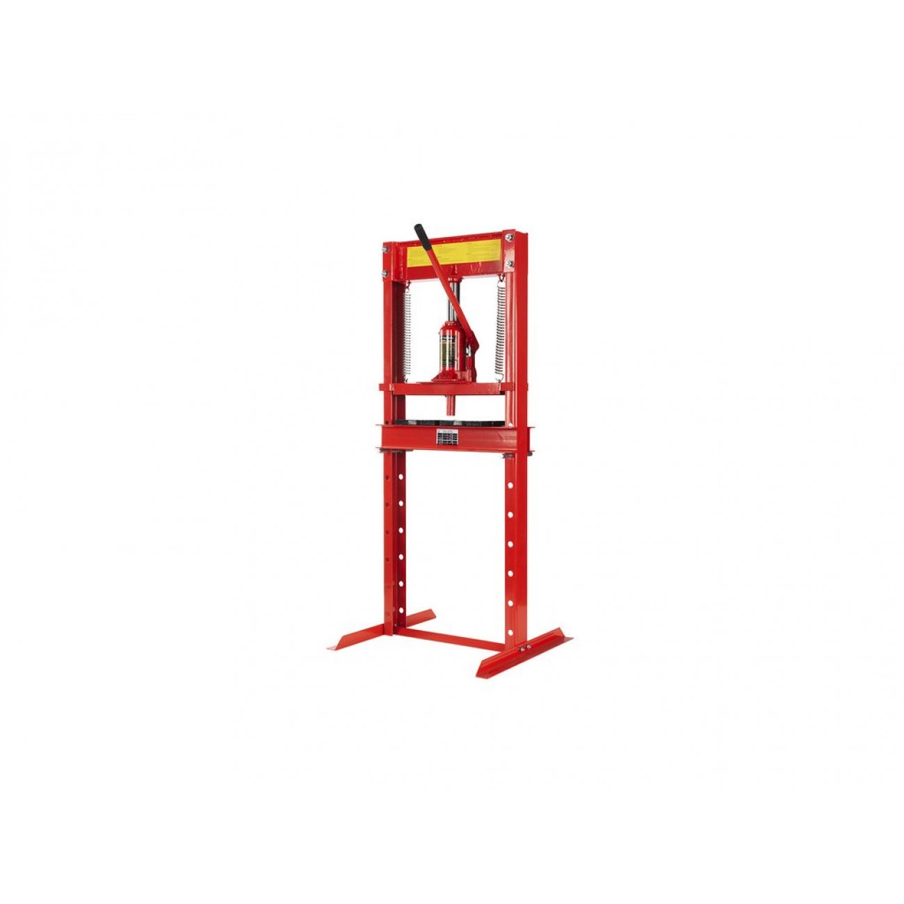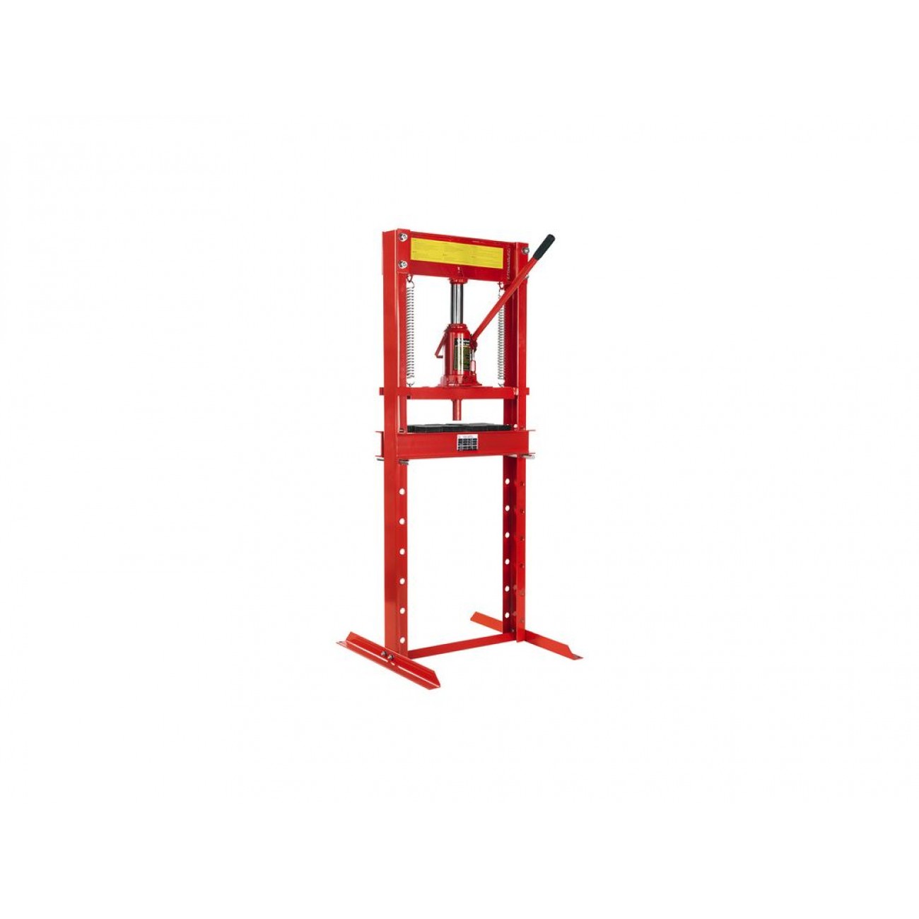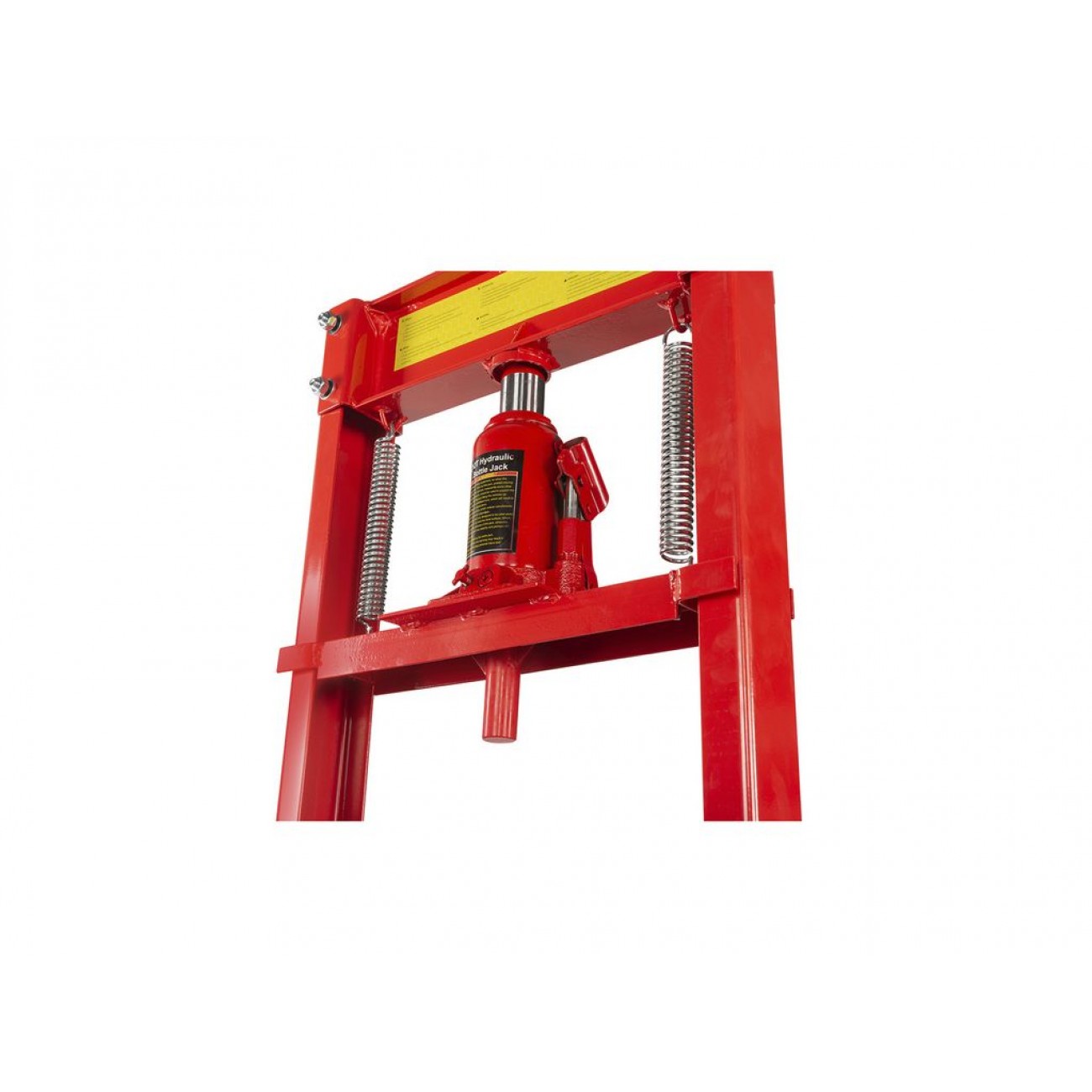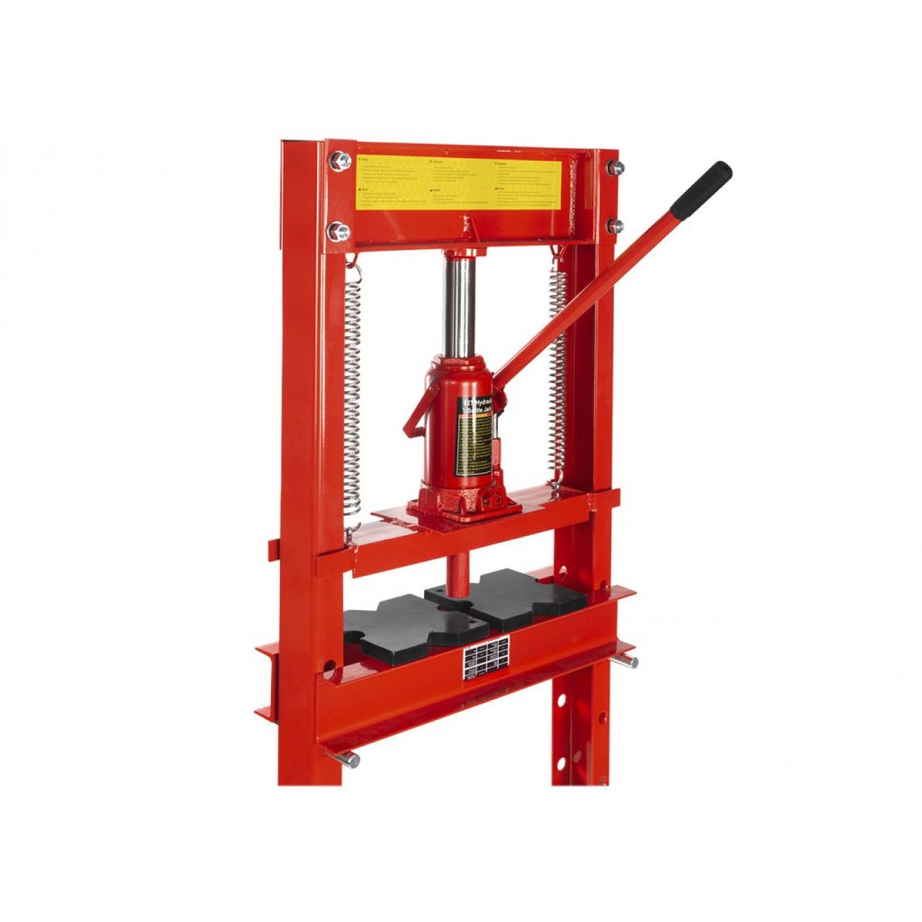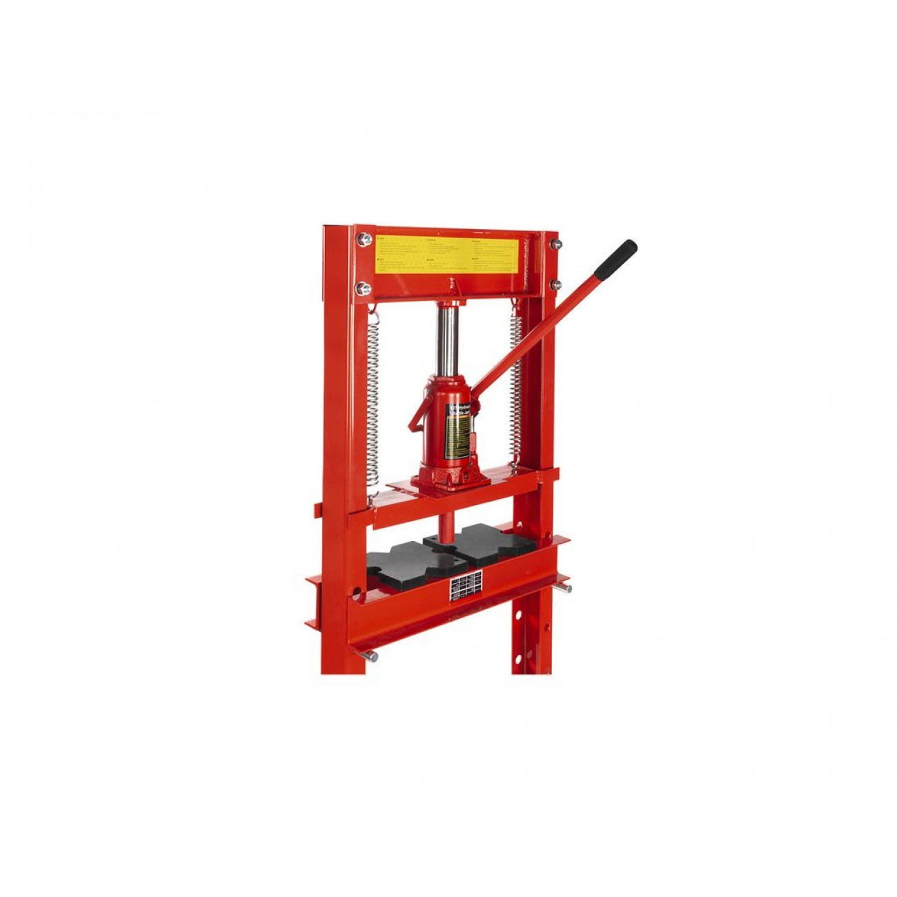 Пляшковий домкрат дозволяє легко відрегулювати висоту опорного столу під заготовку, що дає змогу працювати з деталями різної висоти. Автоматичне повернення поршня у вихідне положення за допомогою пружини спрощує процес обробки та економить робочий час. Для фіксації заготовок прес оснащений 2 призмами розміром 150×150×150 мм. Компактний розмір і вага 42 кг дозволяють зручно використовувати цей гідравлічний прес для майстерні з обмеженою робочою площею.