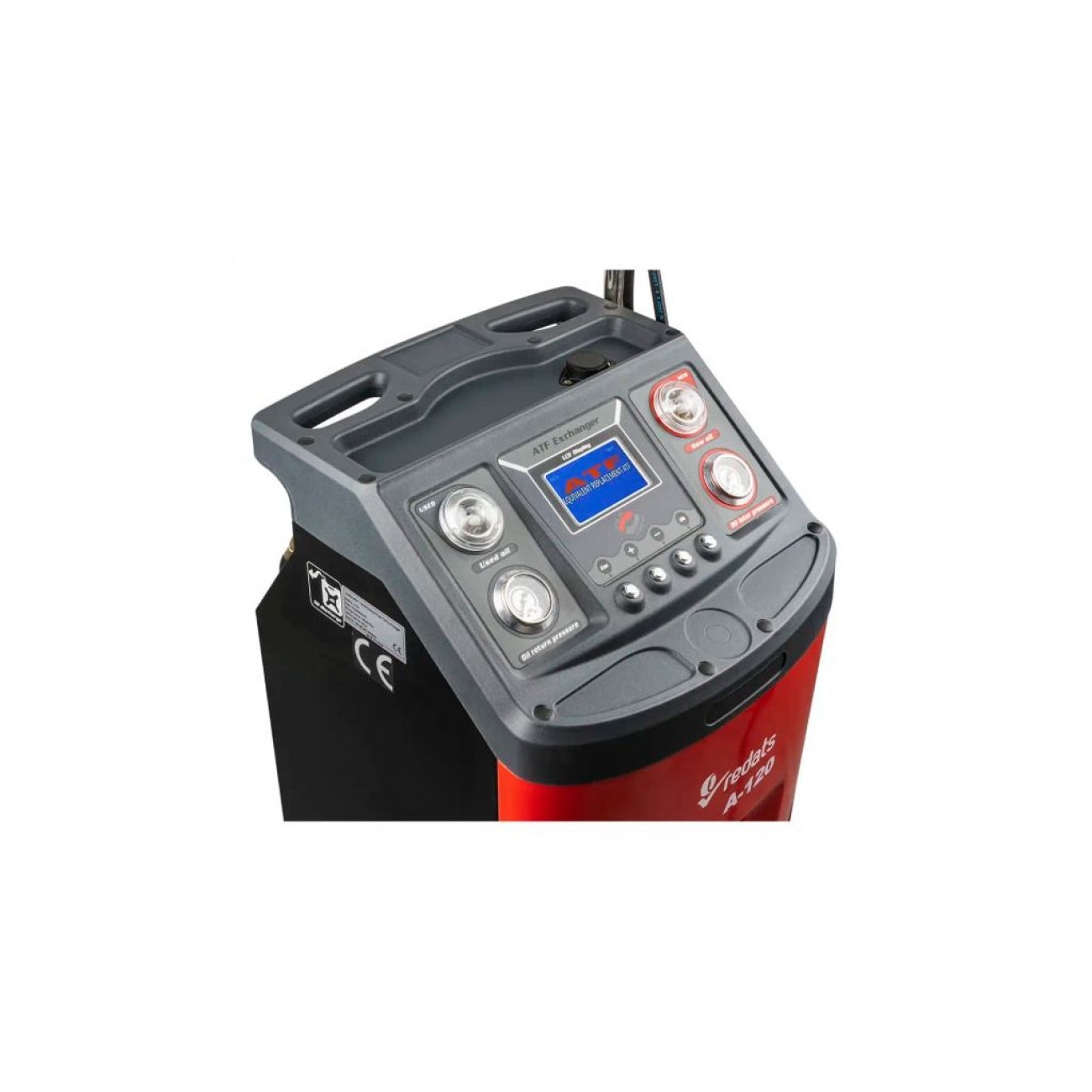 Пристрій для заміни масла в КПП ATF REDATS A-120 - це професійне обладнання для динамічної заміни мастила в автоматичних коробках передач. Швидко видаляє відпрацьоване моторне мастило, очищає внутрішні механізми коробки передач спеціальним розчинником і заповнює її новим мастилом. Весь процес повністю автоматизований, що забезпечує високу точність і швидкість роботи. Робочий тиск - 6 Бар. Максимальна швидкість заміни мастила становить 3 л/хв. Працює на базі електродвигуна потужністю 140 Вт з живленням від напруги 230 В.