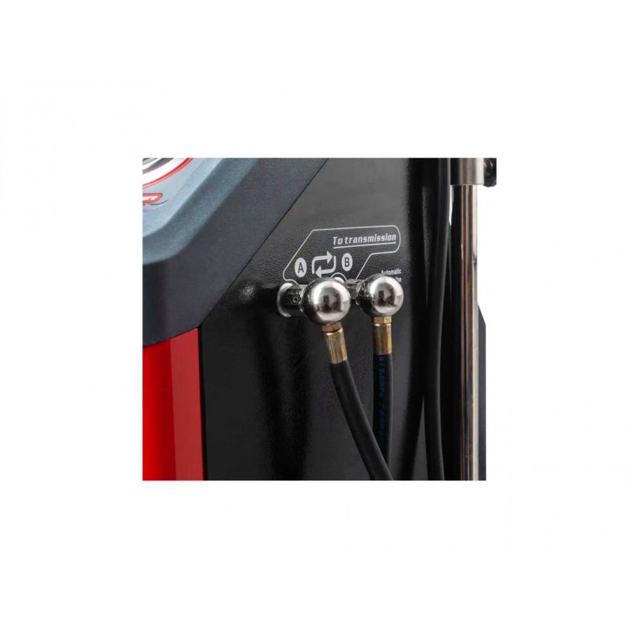 Таке обладнання під'єднується до патрубків коробки передач (вхід/вихід) і одночасно відкачує стару рідину та вводить нову в тій самій кількості. Багато моделей мають режим промивання та контроль температури мастила.