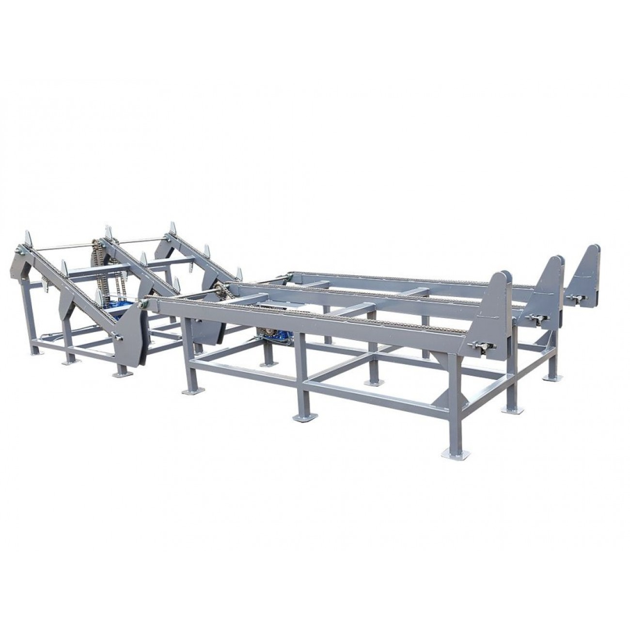 Пристрій подачі сумісний з такими агрегатами, як пилоколуны, брусующие верстати і вертикальні стрічкові пилорами розділові. Як варіант комплектації допускається за розділової частиною встановити поздовжнє ланцюгове пристрій подачі або ланцюгове з кантователем колоди. Доступні моделі як з електро-, так і з гідроприводами.