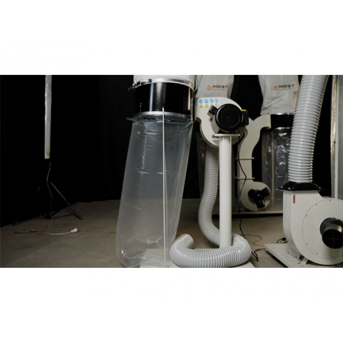 Аспірація MAST Holztechnik H-AS1100 поставляється з поліестеровим фільтром і мішком для відходів на 100 л.