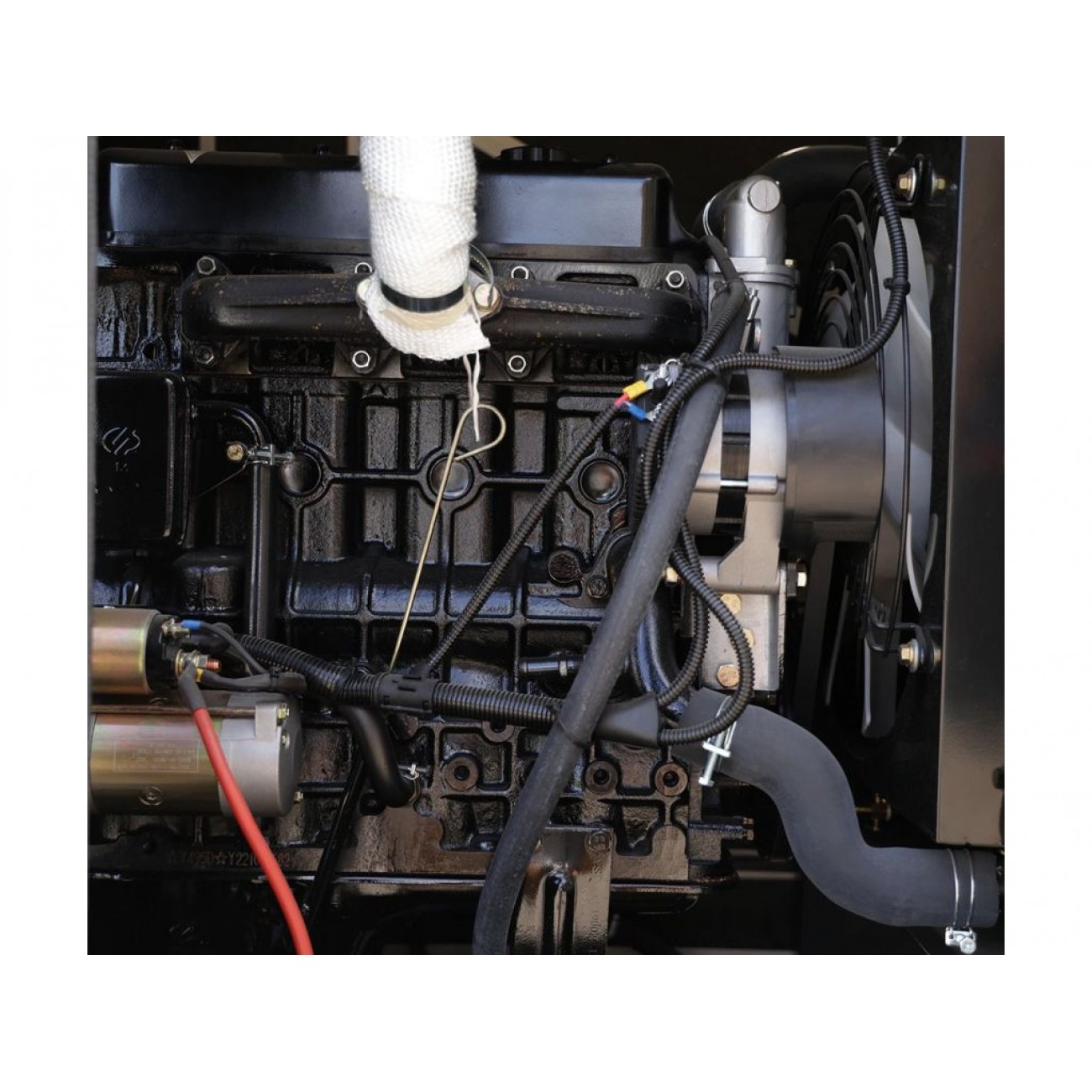 В комплекті: блок аварійного вводу резерву та підігрівач охолоджуючої рідини, генератор виготовлений з оцинкованої сталі та покритий порошковою фарбою, що робить його стійким до корозії та зовнішніх факторів.
