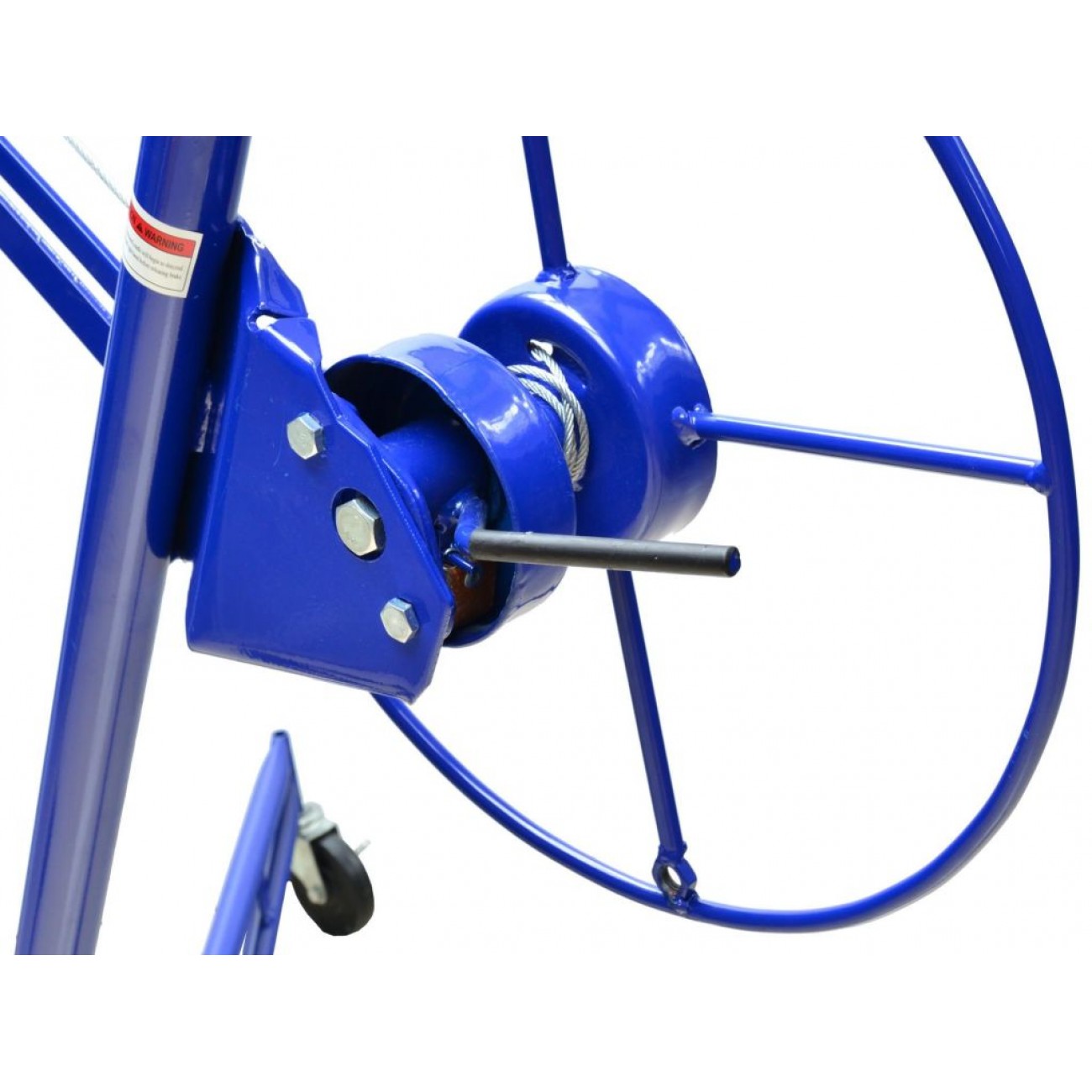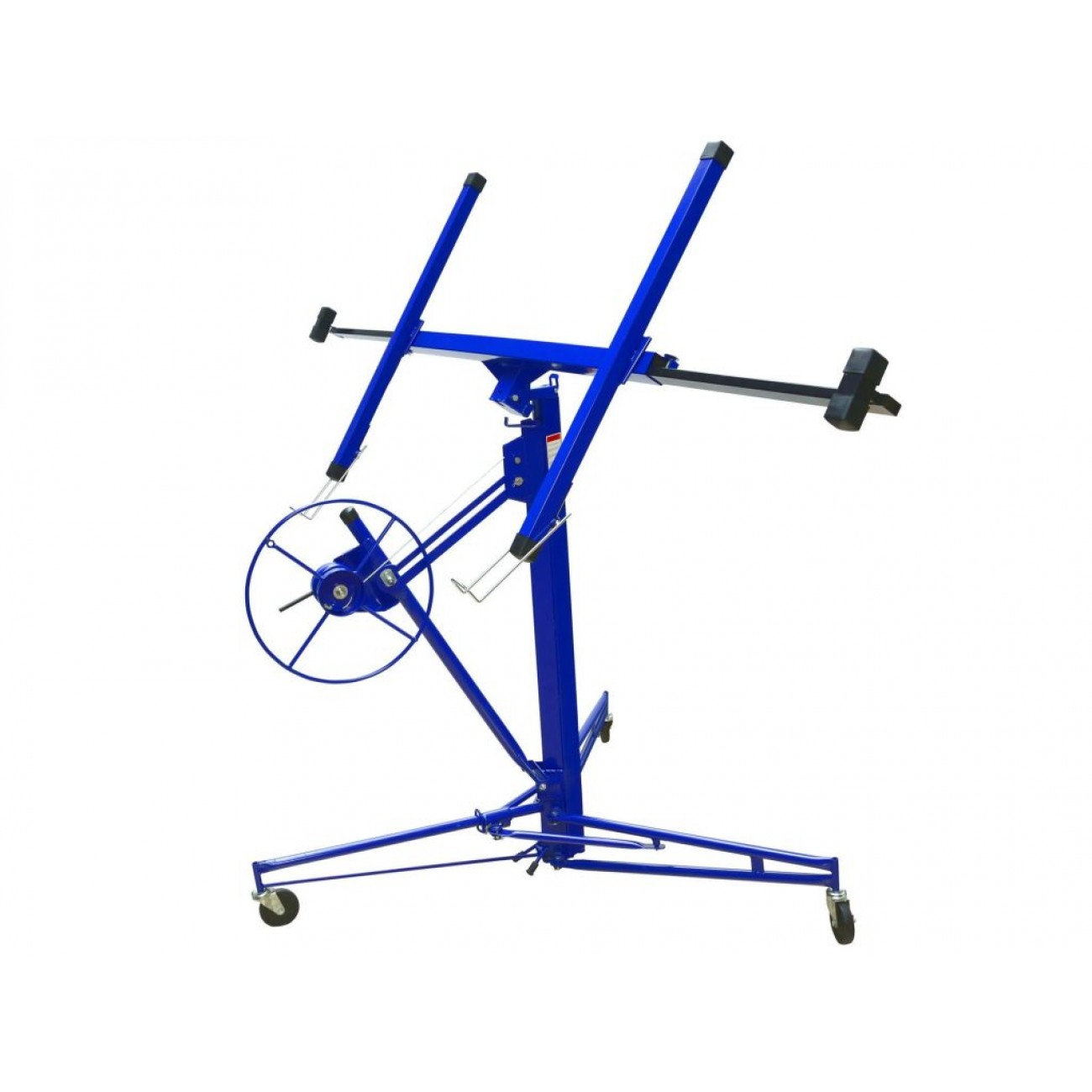 Широка колісна база з можливістю блокування робить пристрій дуже стійким навіть при підйомі великогабаритних гіпсокартонних плит. Додатковою великою перевагою підйомника є можливість його складання, завдяки чому він займає відносно мало місця.