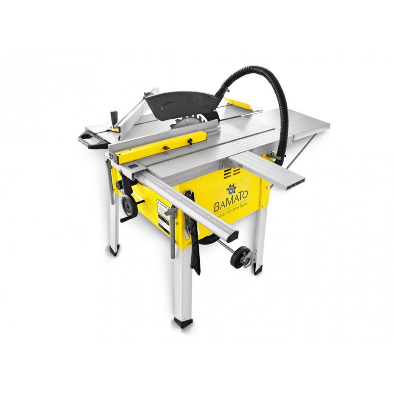 Ріжуча голова регулюється по висоті і має кут нахилу до 45 градусів, а великий висувний стіл на шарикопідшипниках з боковим розширенням дає змогу працювати з великими заготовками. Прогумовані ніжки стола зменшують вібрацію, а регульована кутова рейка покращує точність виконання різу. Двигун потужністю 2,2 кВт і швидкість пильного диска 2800 об/хв дають змогу якісно виконувати завдання різної складності. Пила виготовлена з якісних матеріалів і має тривалий термін служби. Замовити BAMATO BTS-315 можна через каталог деревообробка в Україні сайту KMA.UA.