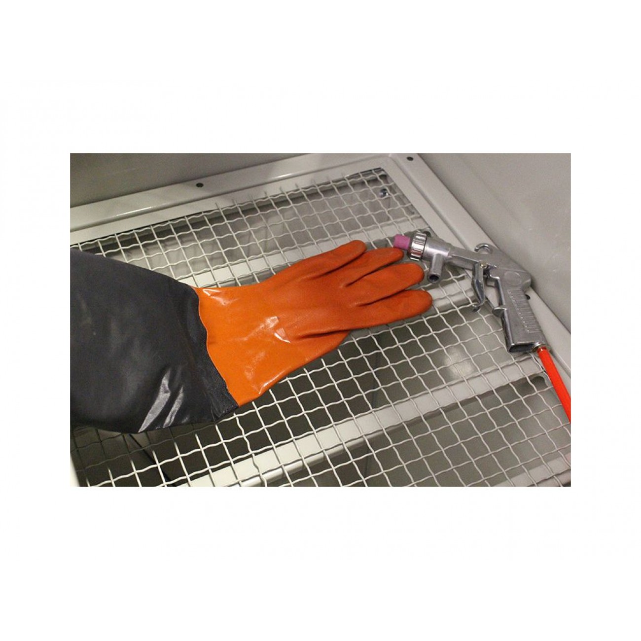 Може використовуватися з різним абразивним матеріалом (пластиковий пісок, скло, корунд, кварц тощо). Допустимий розмір абразивних частинок - 0,12-0,25 мм.
