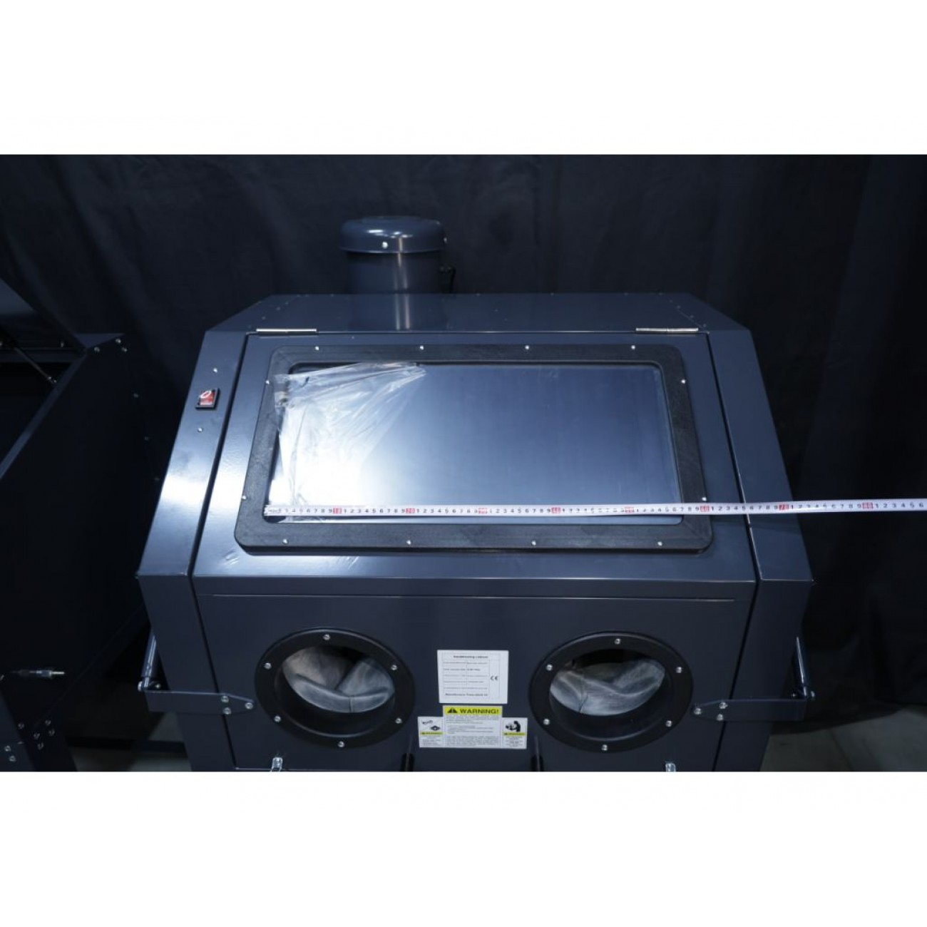Камера оснащена витяжною системою DC15 з фільтром циклонного типу, яка ефективно видаляє пил і легкий абразив всередині камери, що покращує видимість робочої зони і зручність роботи. Для полегшення завантаження і вивантаження дверцята обладнані газовими упорами. Піскоструминний пістолет має 4 змінні керамічні насадки з різними соплами, завдяки чому можна регулювати силу і напрямок абразивного потоку. Така камера піскоструйна має компактний розмір, що дозволяє зручно використовувати її у невеликому приміщенні.