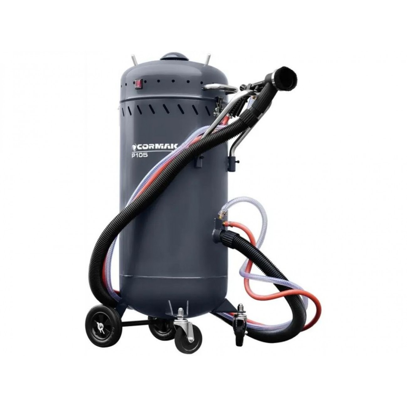 Великий 105-літровий бак робить роботу більш ефективною, дозволяючи проводити довші сеанси піскоструминної обробки без необхідності зупинятися для спорожнення. Це важливо з точки зору економії часу та безперебійності робочого процесу.