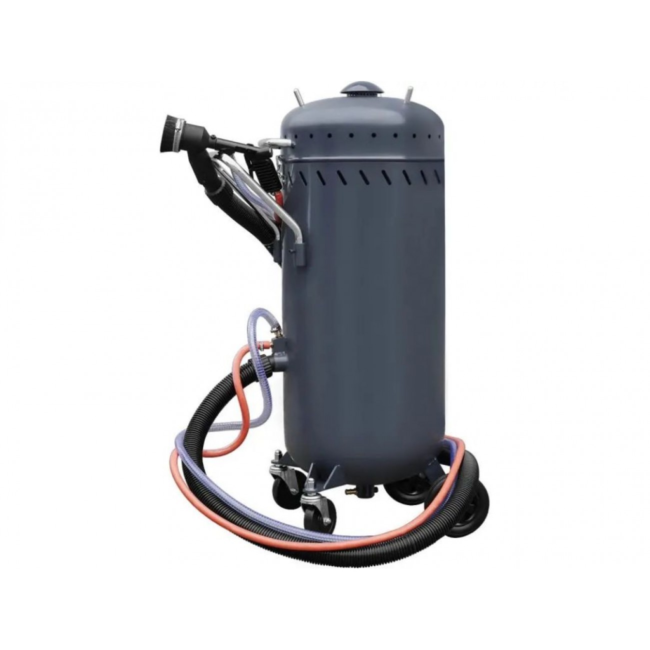Мобільність піскоструминного апарату, завдяки зручним коліщаткам і ручкам, дозволяє легко переміщати його і ефективно використовувати на різних робочих місцях. Це інструмент, який не тільки підвищує ефективність процесу піскоструминної обробки, а й забезпечує користувачеві зручність і гнучкість у роботі з очищення поверхонь.