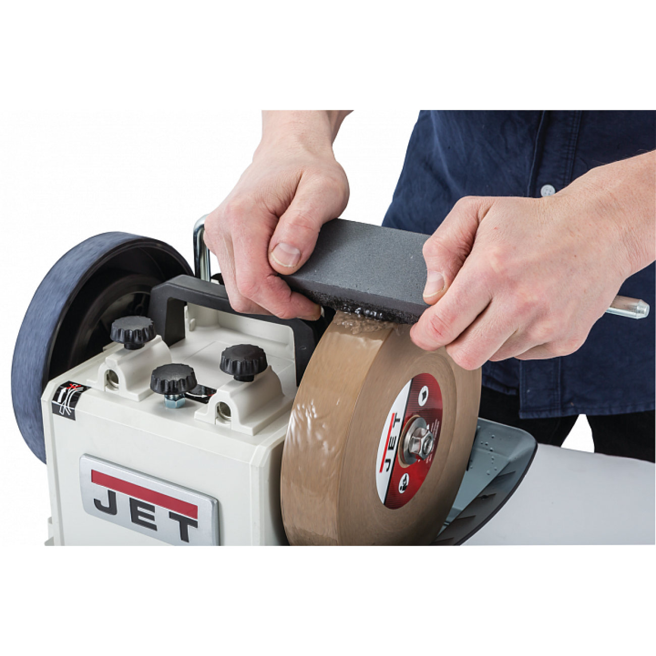 Двусторонний брусок JET для очистки шлифовального круга с грубой шероховатой и гладкой мелкозернистой поверхностями.